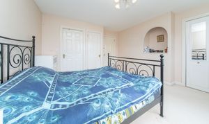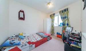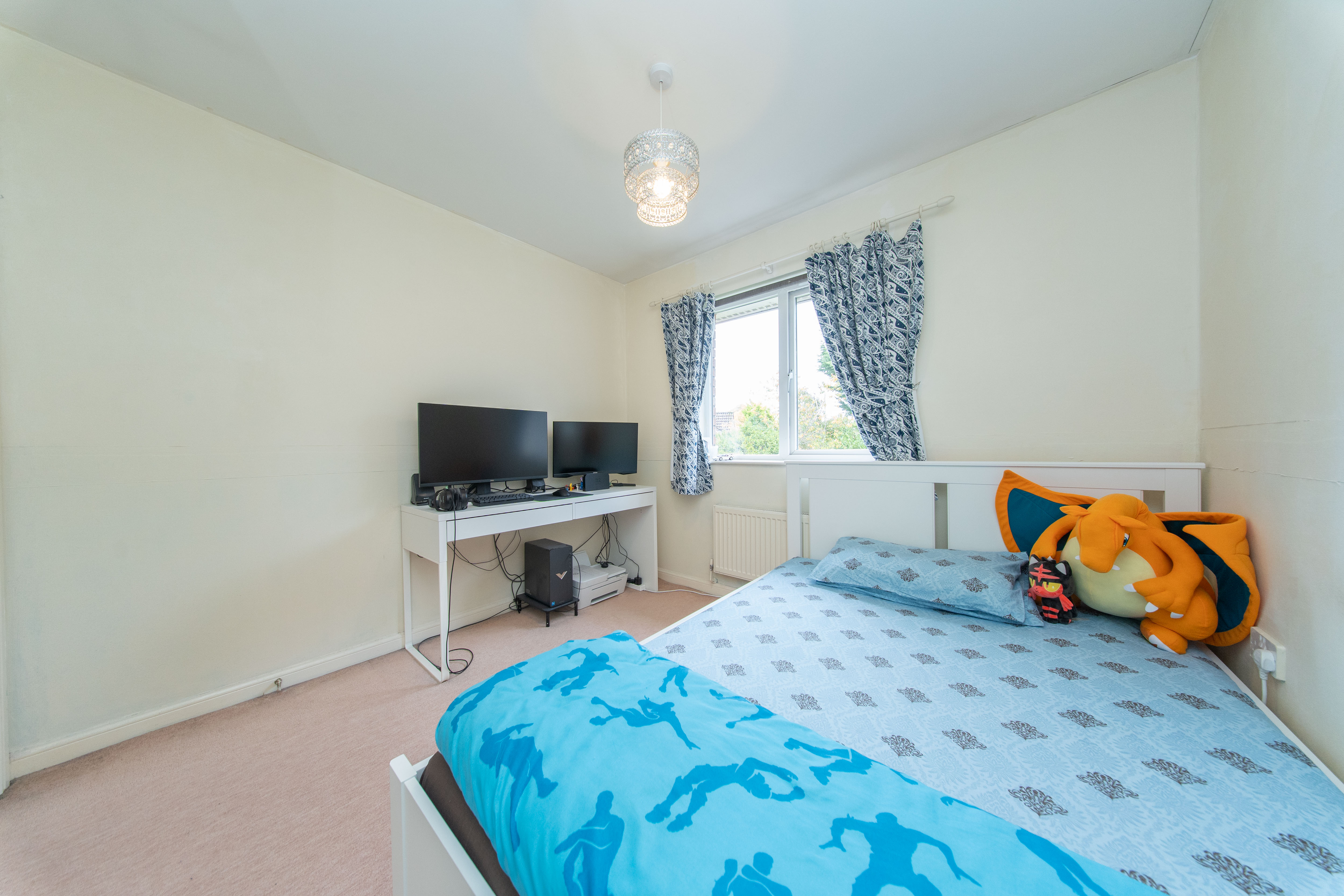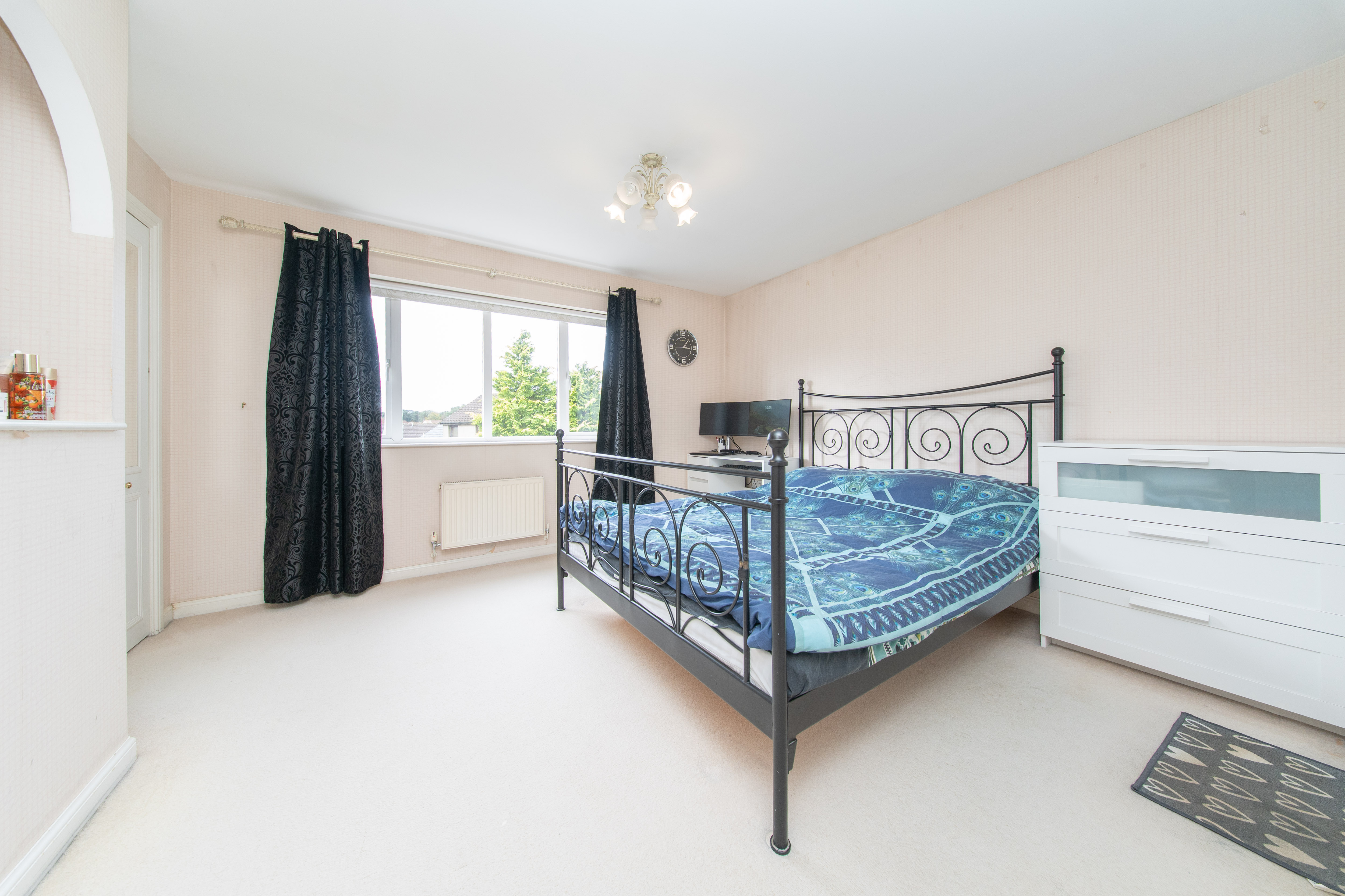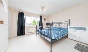 Impressive double bedroom comprising of a carpeted floor, neutral decor and a rear window overlooking the fully enclosed garden.