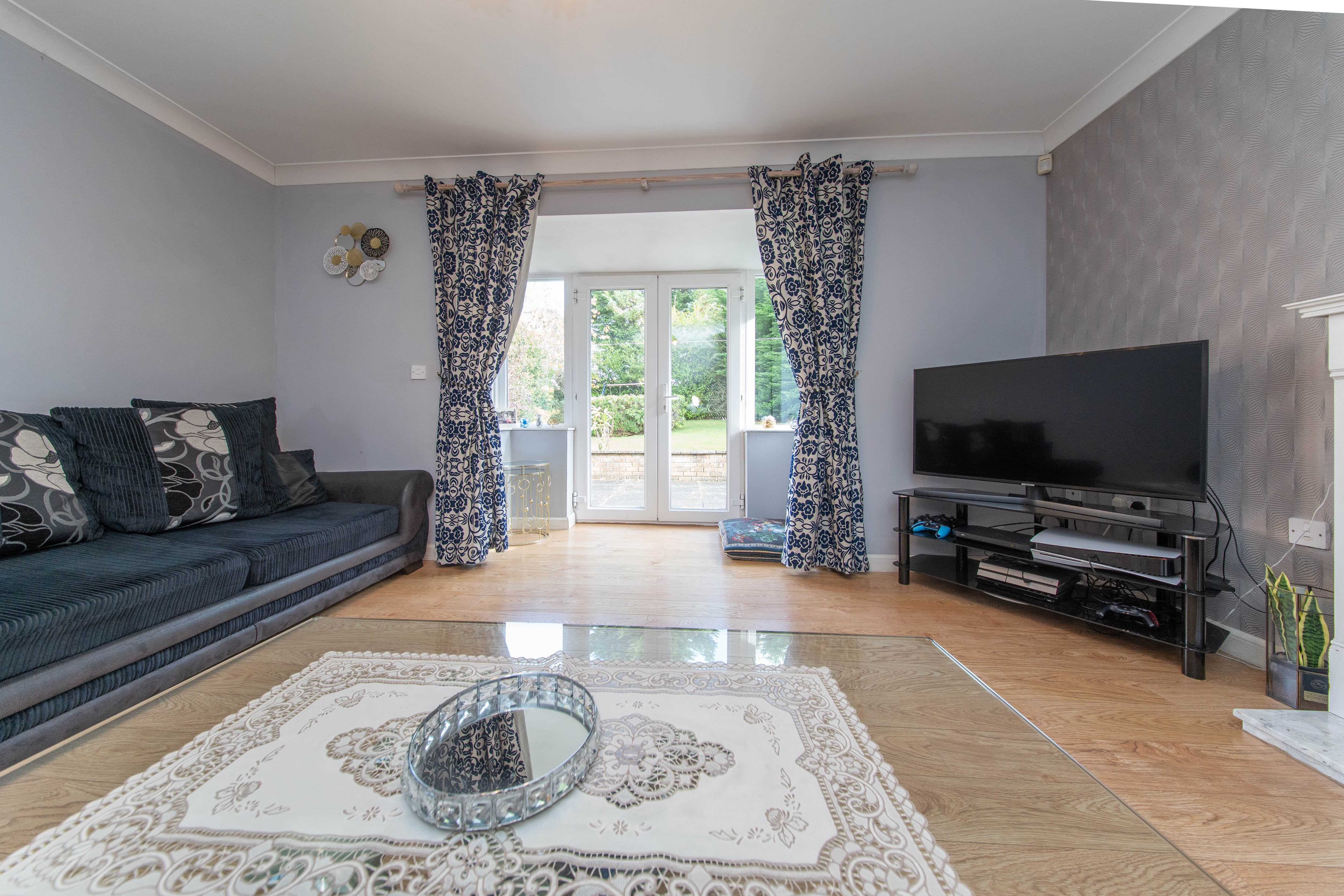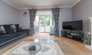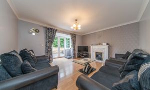 This impressive room has been painted with neutral decor, wooden flooring and a feature fireplace. A beautiful bay window with a double patio door leads you out to the large fully enclosed garden.