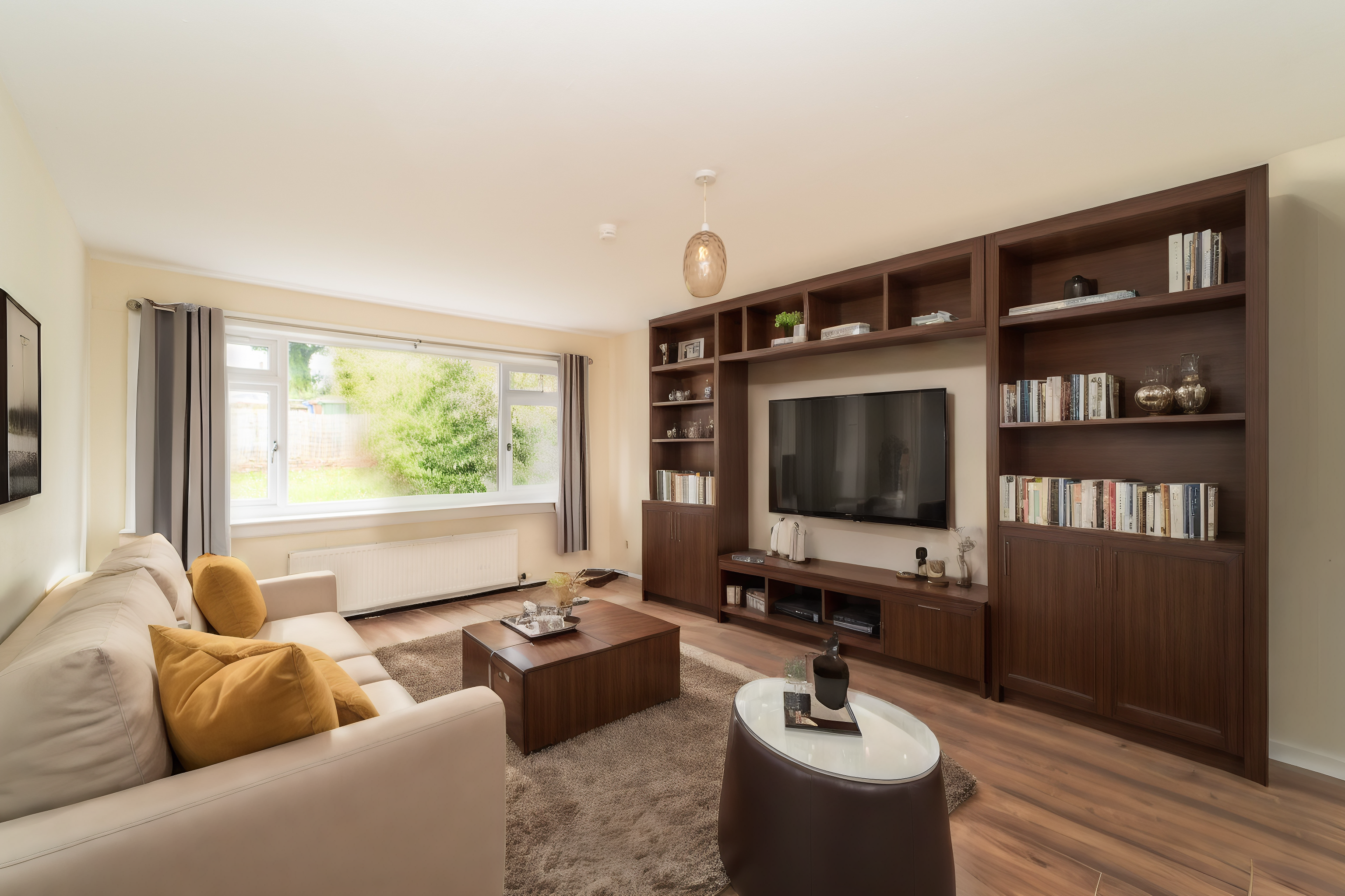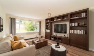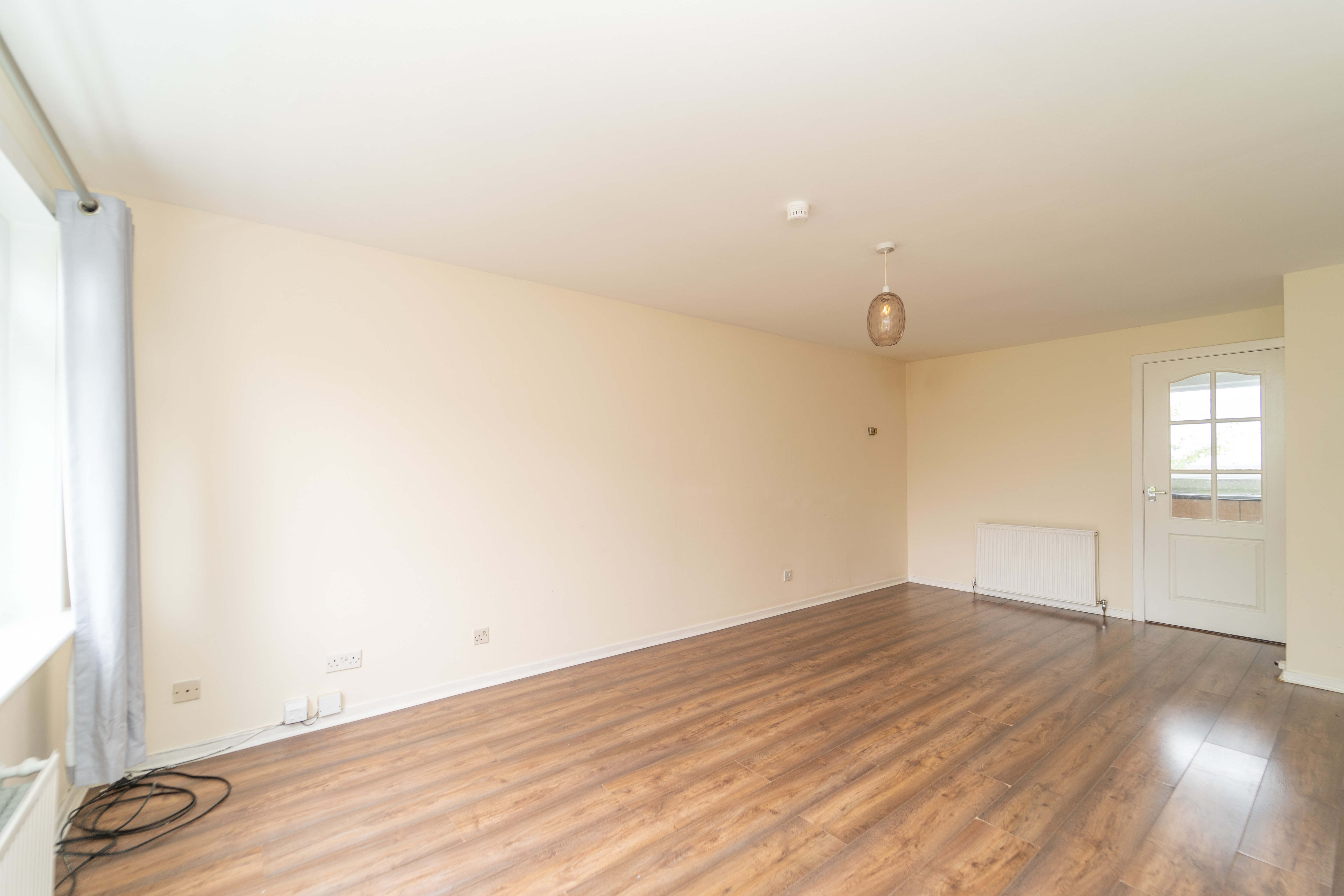 5.939m x 3.519m (19’05” x 11’06”) Located to the front of the property, this room is illuminated by a large window, as well as a ceiling light. The neutral paper to the walls and wood-effect laminate to the floor create a homely atmosphere. Two radiators, a smoke detector, and power points are also present.