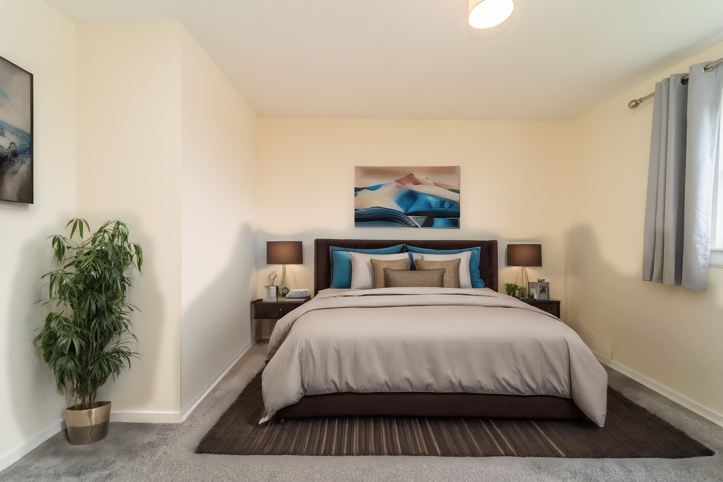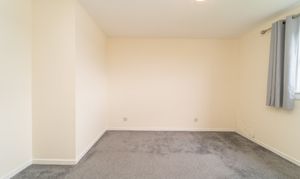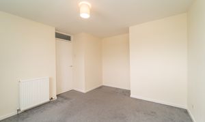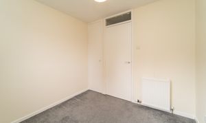 2.570m x 2.566m (08’05” x 08’05”) This bedroom also features a neutral carpet to the floor, as well as neutral paper to its walls. A built-in closet provides storage, and a window to the front provides natural light. A ceiling light brightens up the room, and an ethernet socket, radiator, and power points are also present.