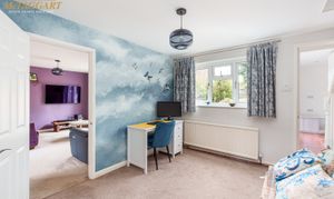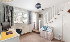The entrance hall has a downstairs WC with a integral cupboard housing a Worcester combi boiler, from the entrance hall the ground floor comprises of the following, a useful reception room / office space with a staircase rising to the first floor, utility room with space for a washing machine with a door to the rear garden and integral door to the garage, which has an up and over door and power and lighting. There is a separate living room with French doors onto the rear garden, and a kitchen dining area with a bay front window, the fitted kitchen has a selection of eye level and base units with wood effect work surfaces, space for an American fridge freezer, rangemaster oven, integrated dishwasher and overhead extractor fan.