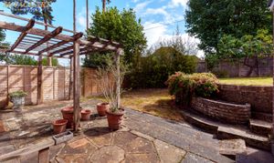 Outside the rear garden has patio seating areas, raised lawned areas with surrounding planted borders. At the front there is a driveway with off road parking for up to three cars.