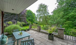 Nestled in 0.7 acres of mature grounds, Ruscello feels a world away from Bolton’s vibrant town centre. An extensive raised and tiered stone terrace wraps around the front and sides of the house to soak in sunlight from morning to evening.