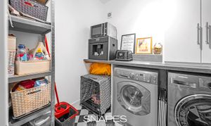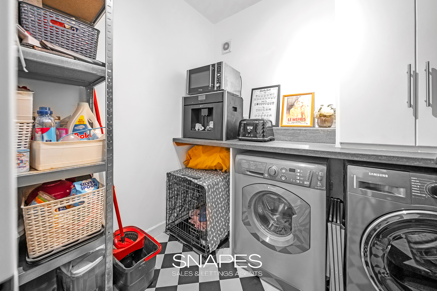 The utility room is an excellent complement to the kitchen, offering space for appliances such as a washing machine and dryer plus additional storage (including coats and shoes) to be kept neatly out of the main living areas.