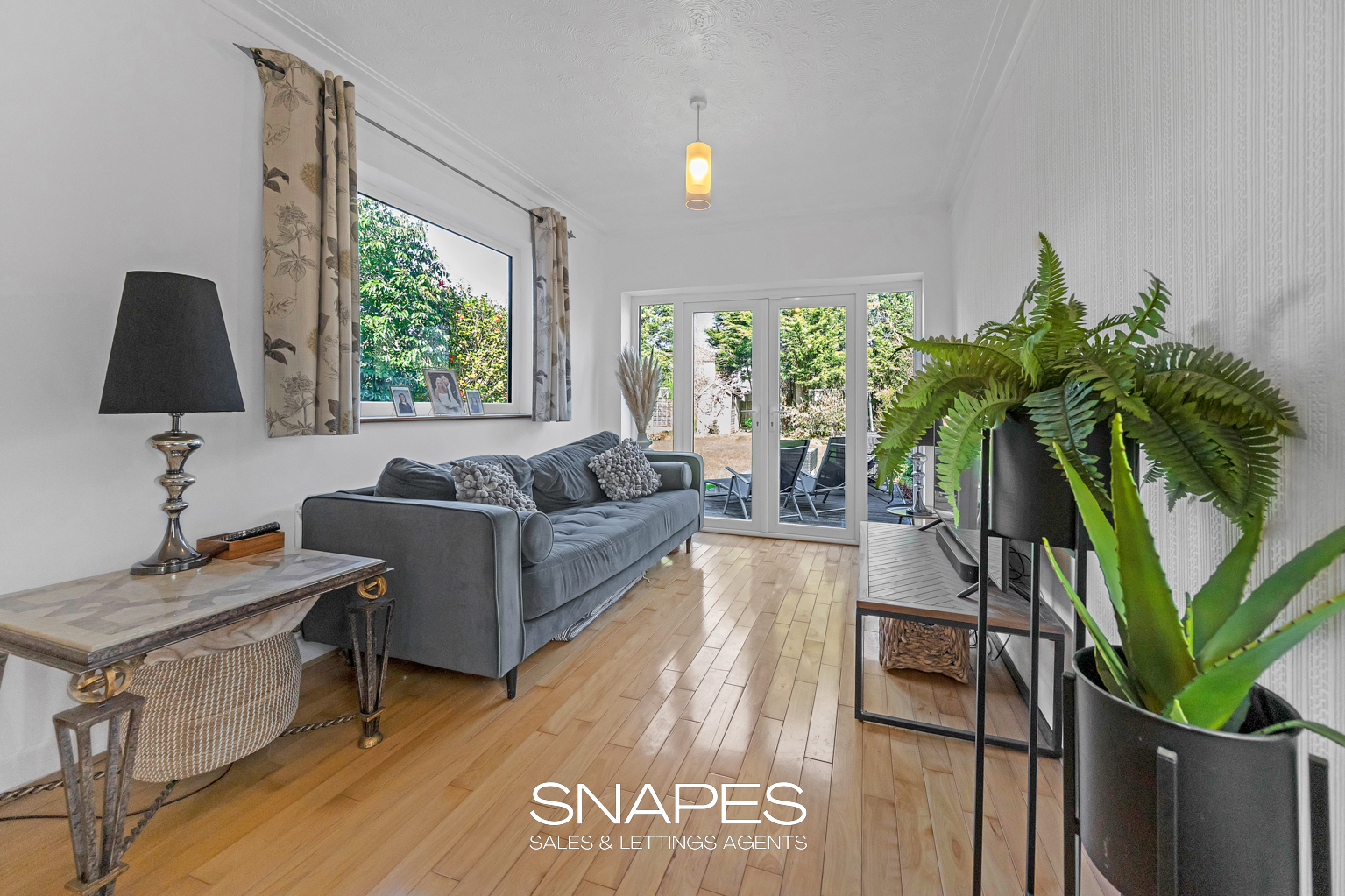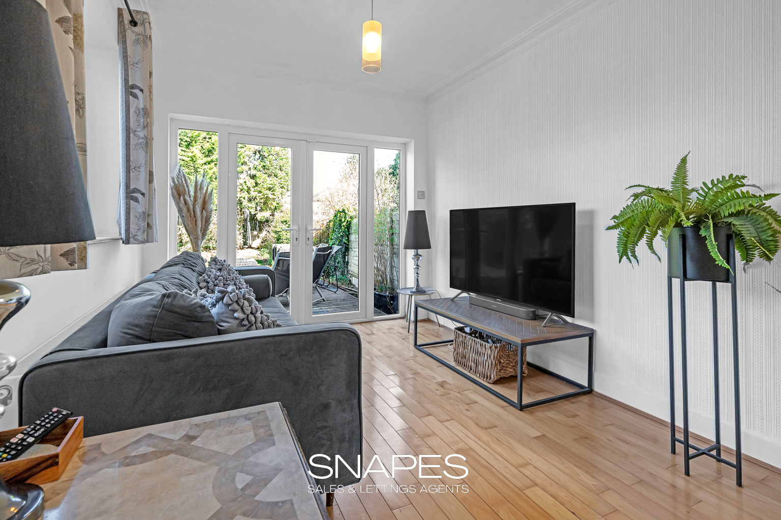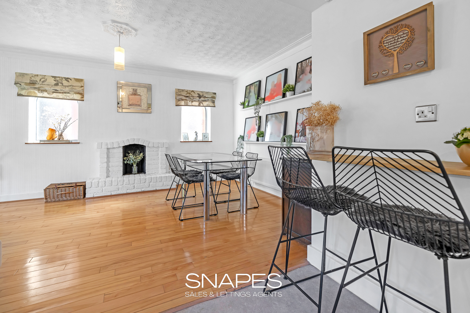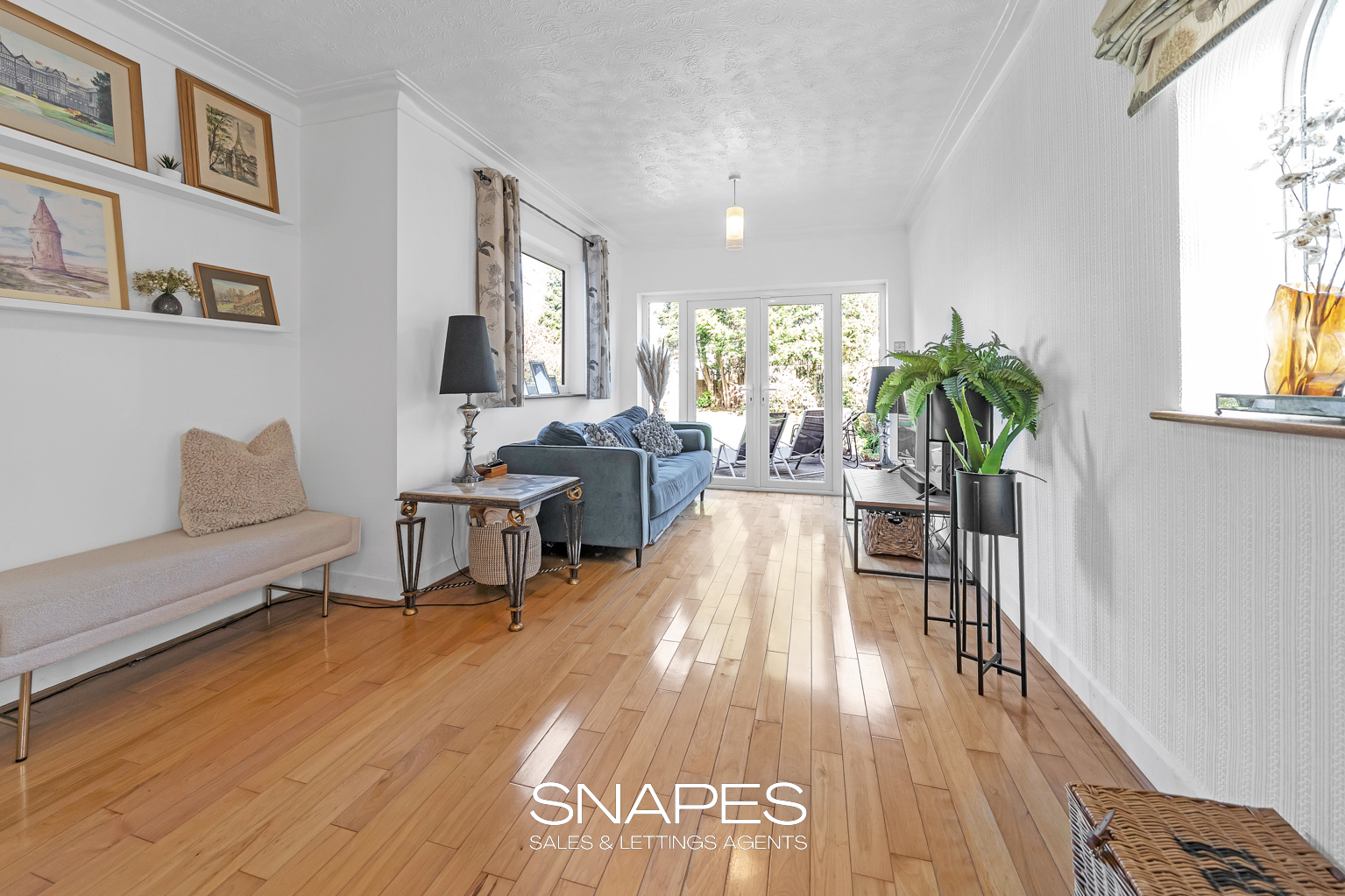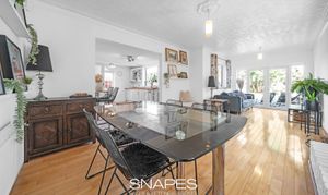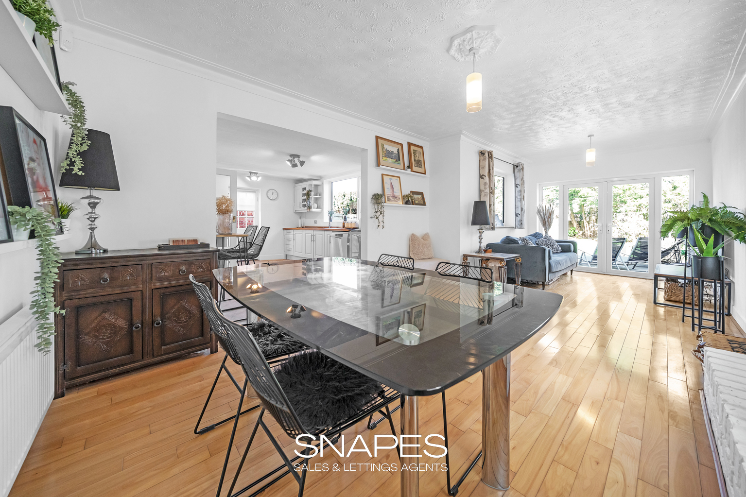 To the rear, an impressive reception space - accessed via the kitchen - incorporates both dining and seating areas. Measuring over 24 feet, this room offers excellent flexibility in layout and is perfectly suited for entertaining, particularly given its direct connection to the kitchen. Double patio doors open onto the decking area, while windows to both side elevations enhance natural light.