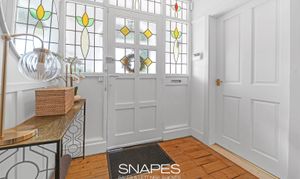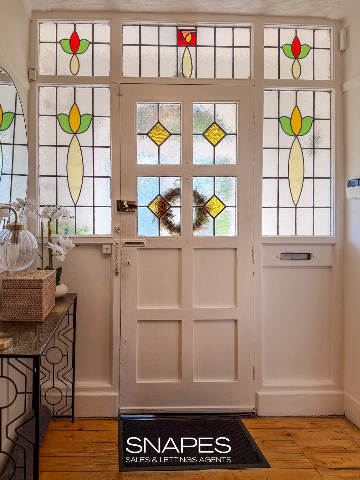 The ground floor offers versatile accommodation and comprises: an entrance porch leading into a light, welcoming hallway through a beautiful, 1930s original door with leaded and stained-glass windows (see photos). The hallway includes a staircase to the first floor with useful under-stairs storage, and provides access to the lounge, study/playroom, utility room, and kitchen.