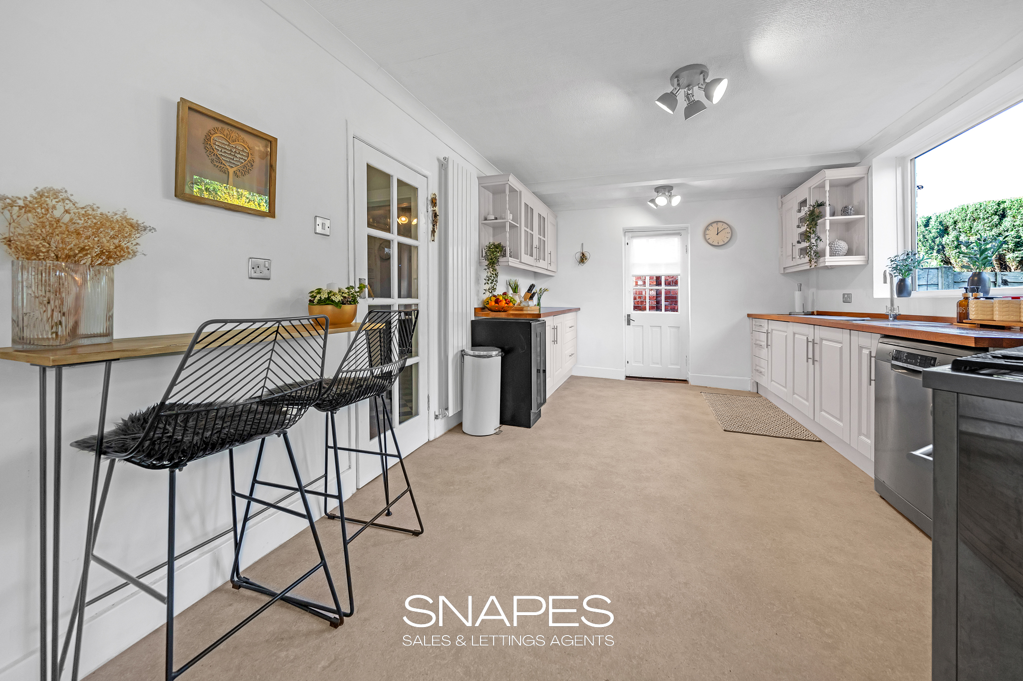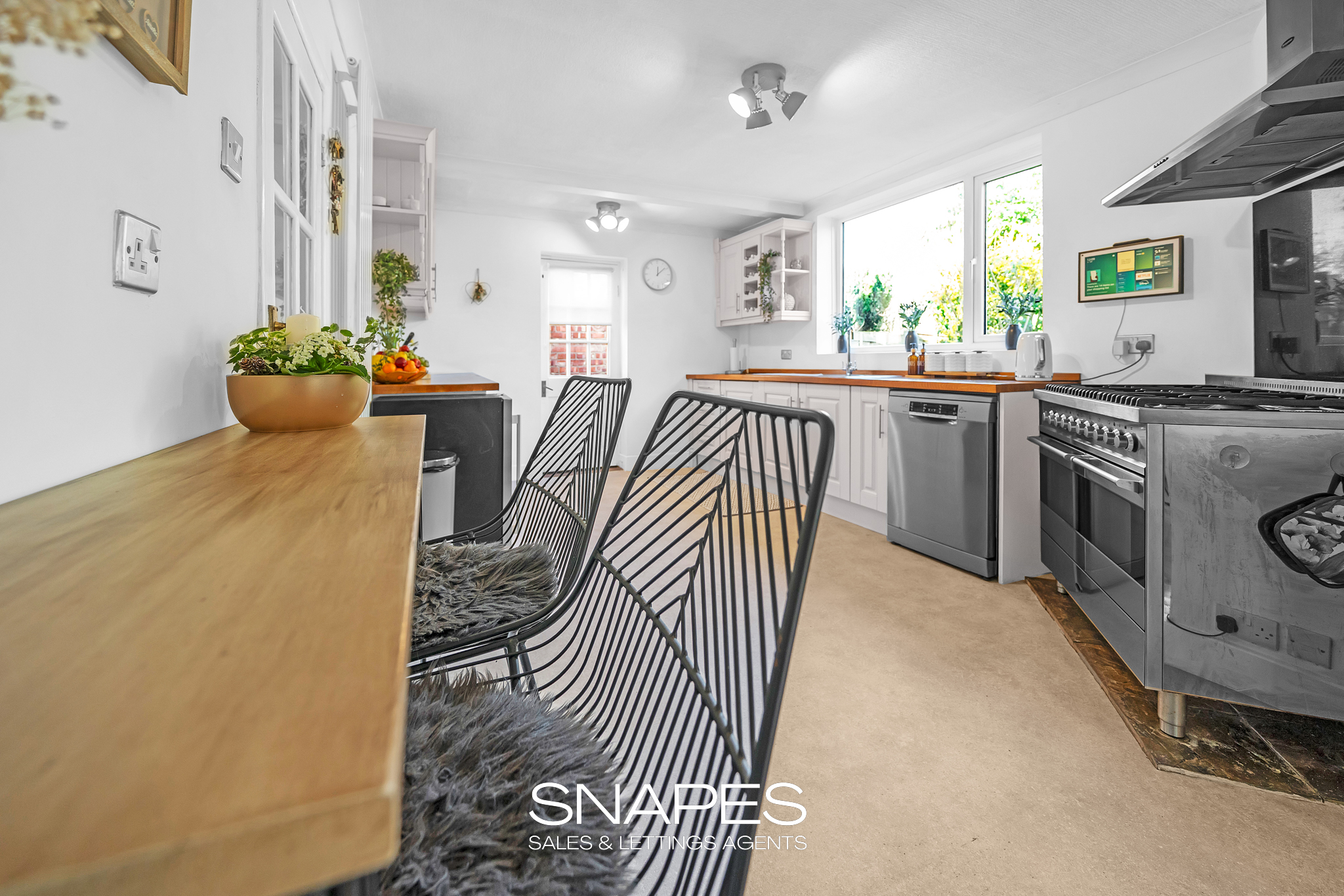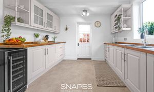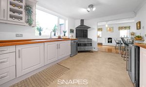 The kitchen (see photos) is a generously sized and well-appointed space, featuring a breakfast bar, a range of base and eye-level units which include display units at eye level (see photos), and oak work surfaces that complement the character of the home. There is a window overlooking the rear garden, access to the side. There is space within the kitchen for appliances, remembering you also have the separate utility room.