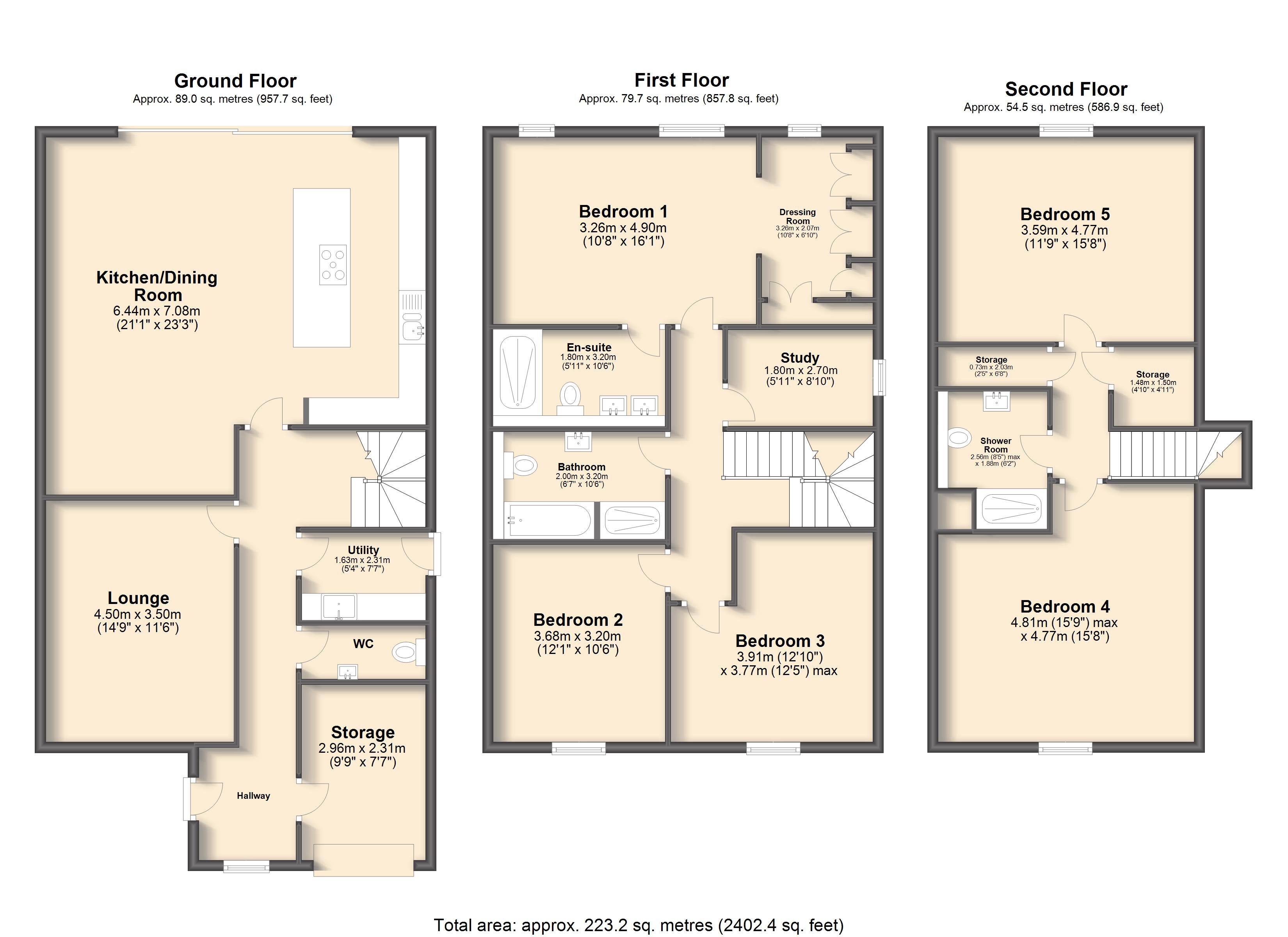 The second-floor plays host to a further bedroom suite and an additional shower room. There are two storage spaces incorporated into the layout on this floor - perfect for linen storage and suitcases. There is another room on this level that could be used in plethora of ways - another ultra-spacious fifth bedroom, a dressing area, a self-contained living space perfect for a teenager/dependant relative or a luxurious gym or cinema room. This property provides the opportunity to create a space that works for you.