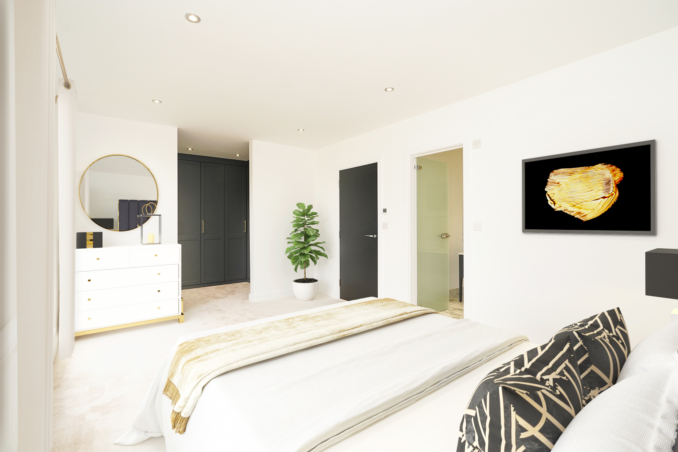 An impressive oak staircase with feature oak handrail and contemporary spindles leads to the first floor. The gorgeous Principal Bedroom Suite, features a luxurious dressing area and a deluxe en-suite shower room.