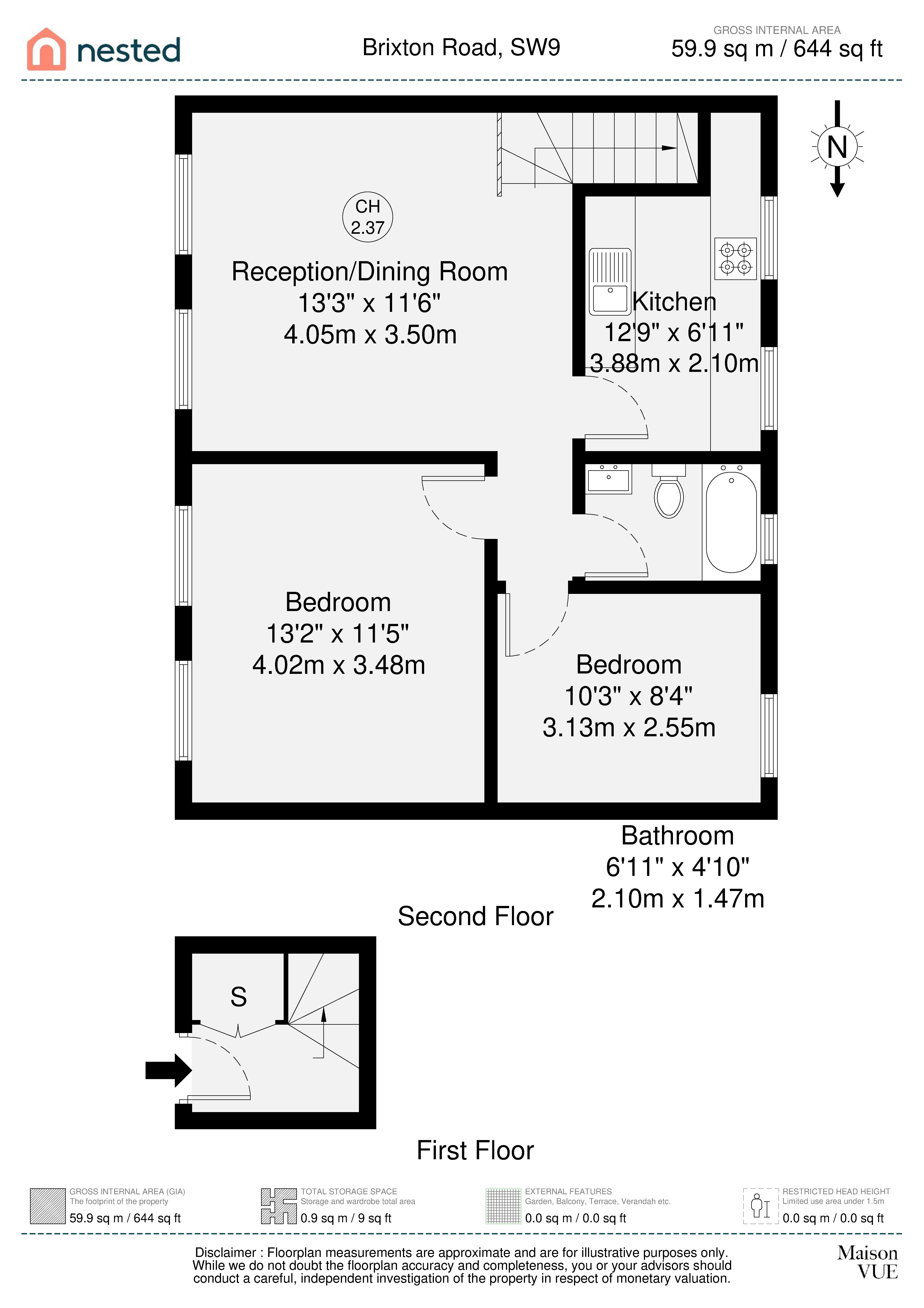 - Approx 60 sq m / 644 sq ft