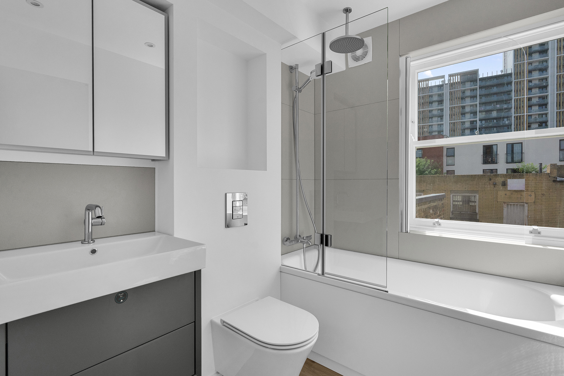 There are also double-glazed wooden sash windows, video intercom entry, and a mix of spot and pendant light fittings.
