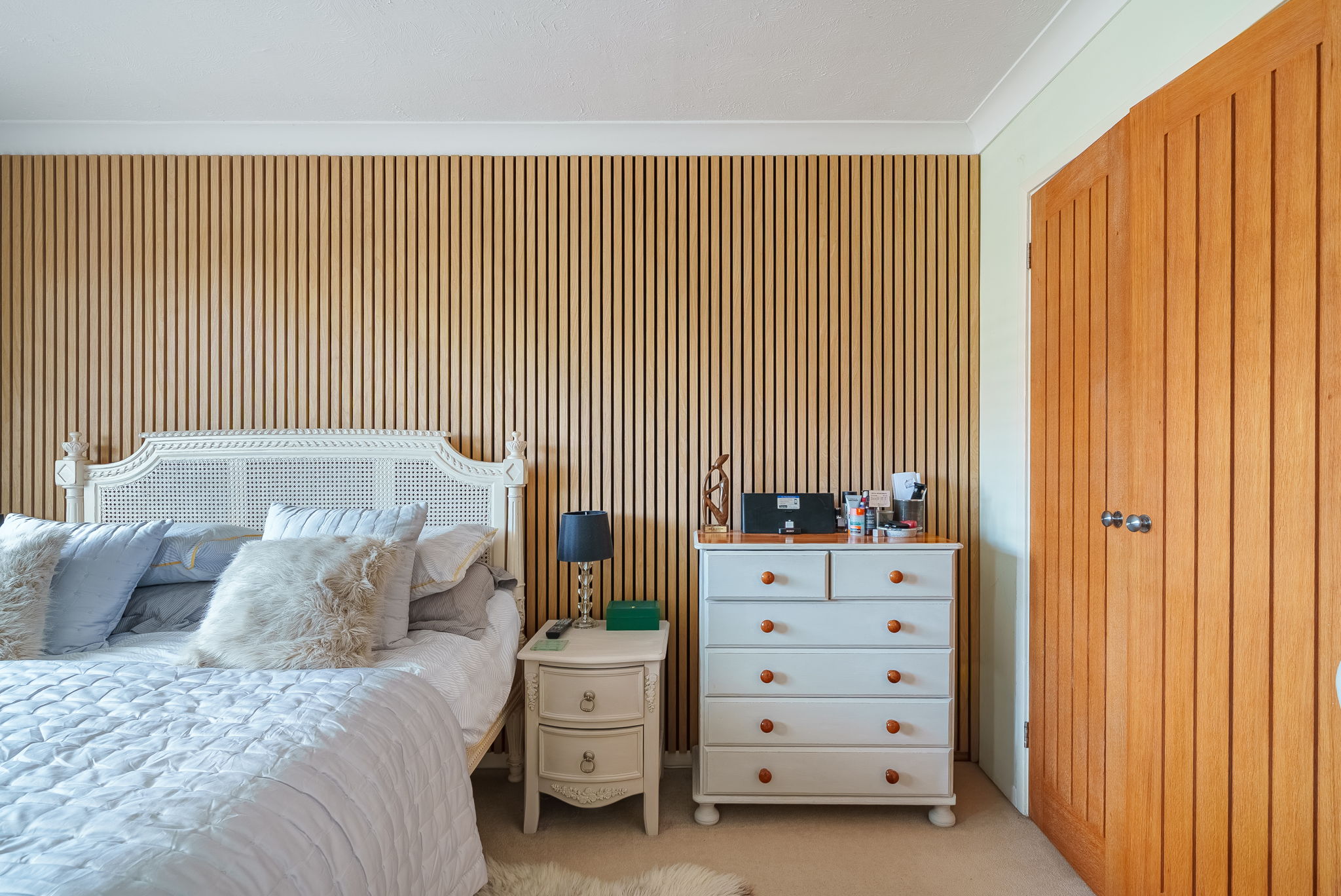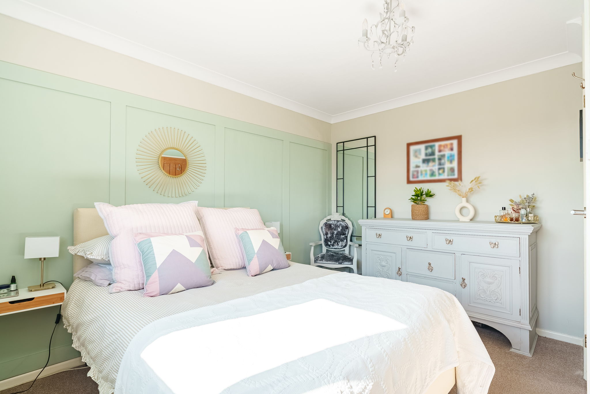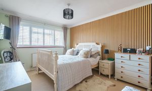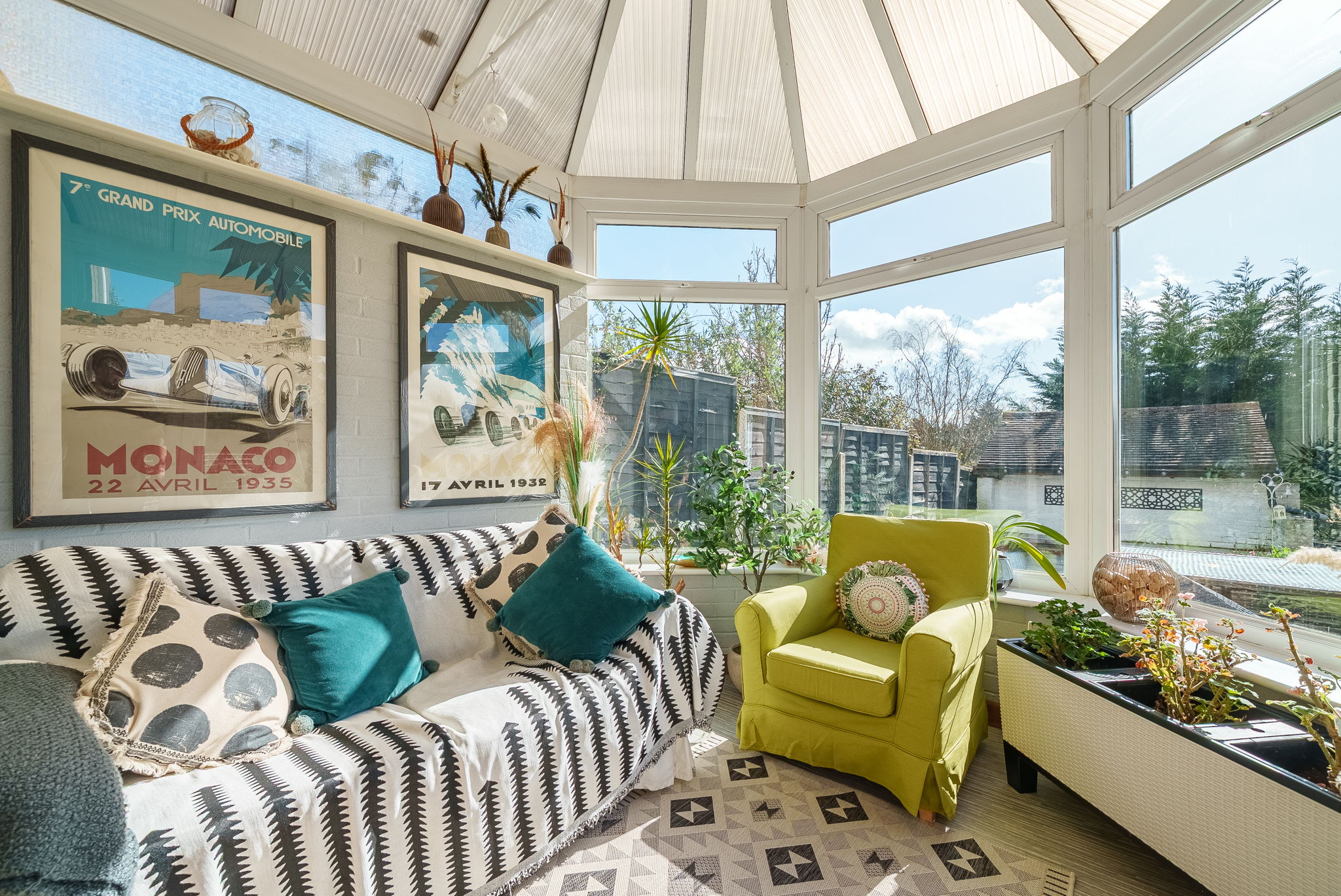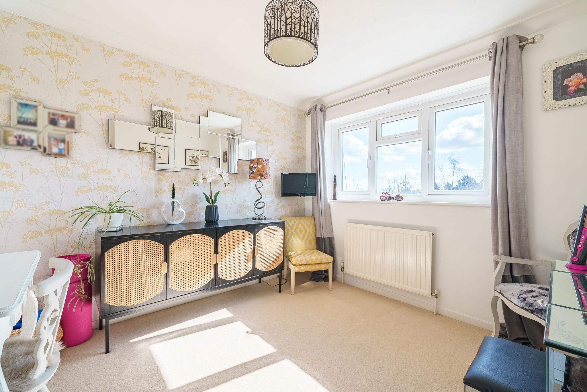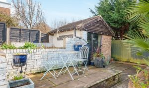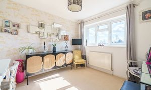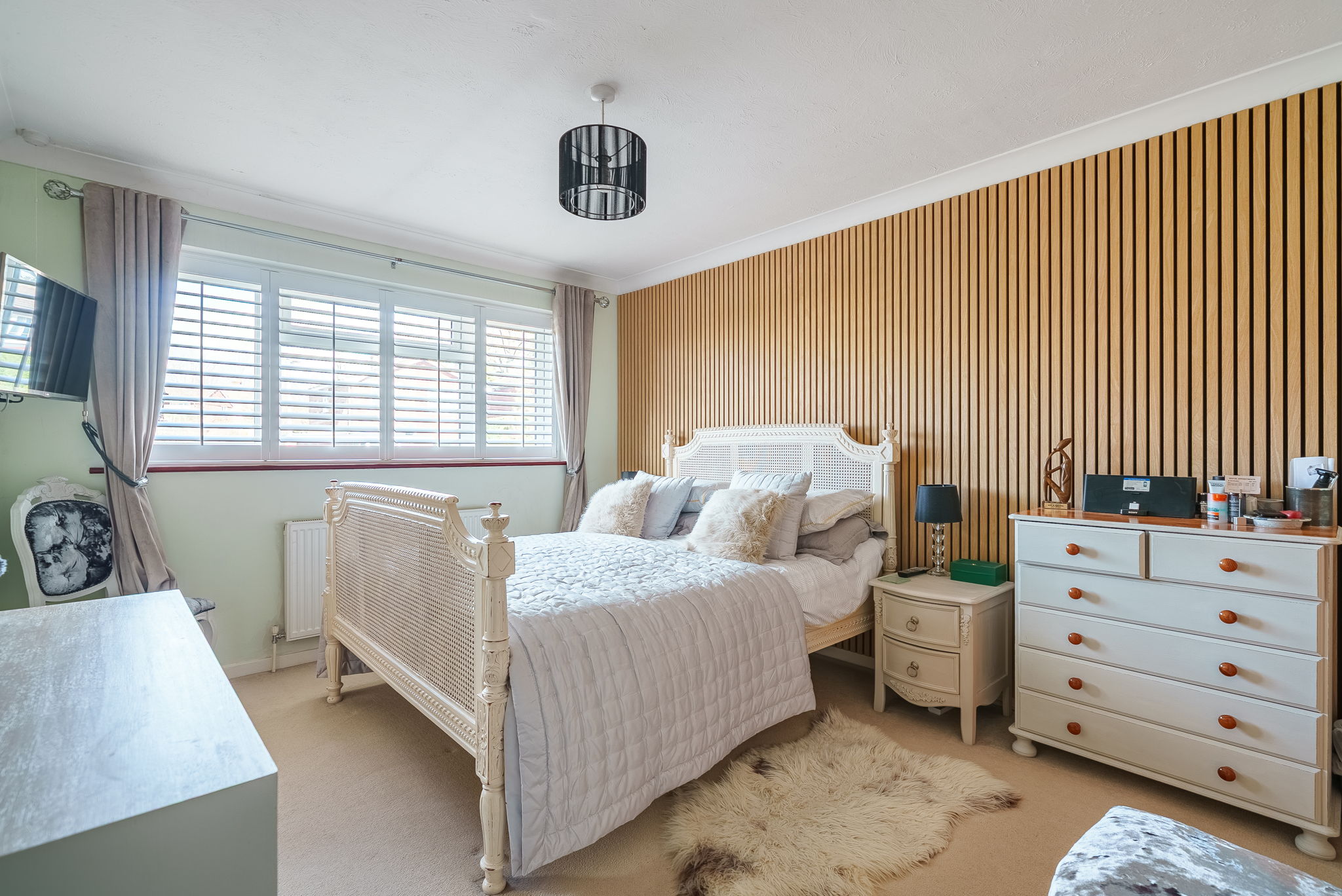 The property is approached via a driveway, with parking for four cars. A side gate leads to the south-facing, landscaped rear garden which is mainly laid to lawn with raised flower beds and decking. The ample patio area offers the perfect space for alfresco dining and summertime entertaining. There is an outbuilding, with power & light, which is currently used as a workshop, but could equally be converted to a garden study.