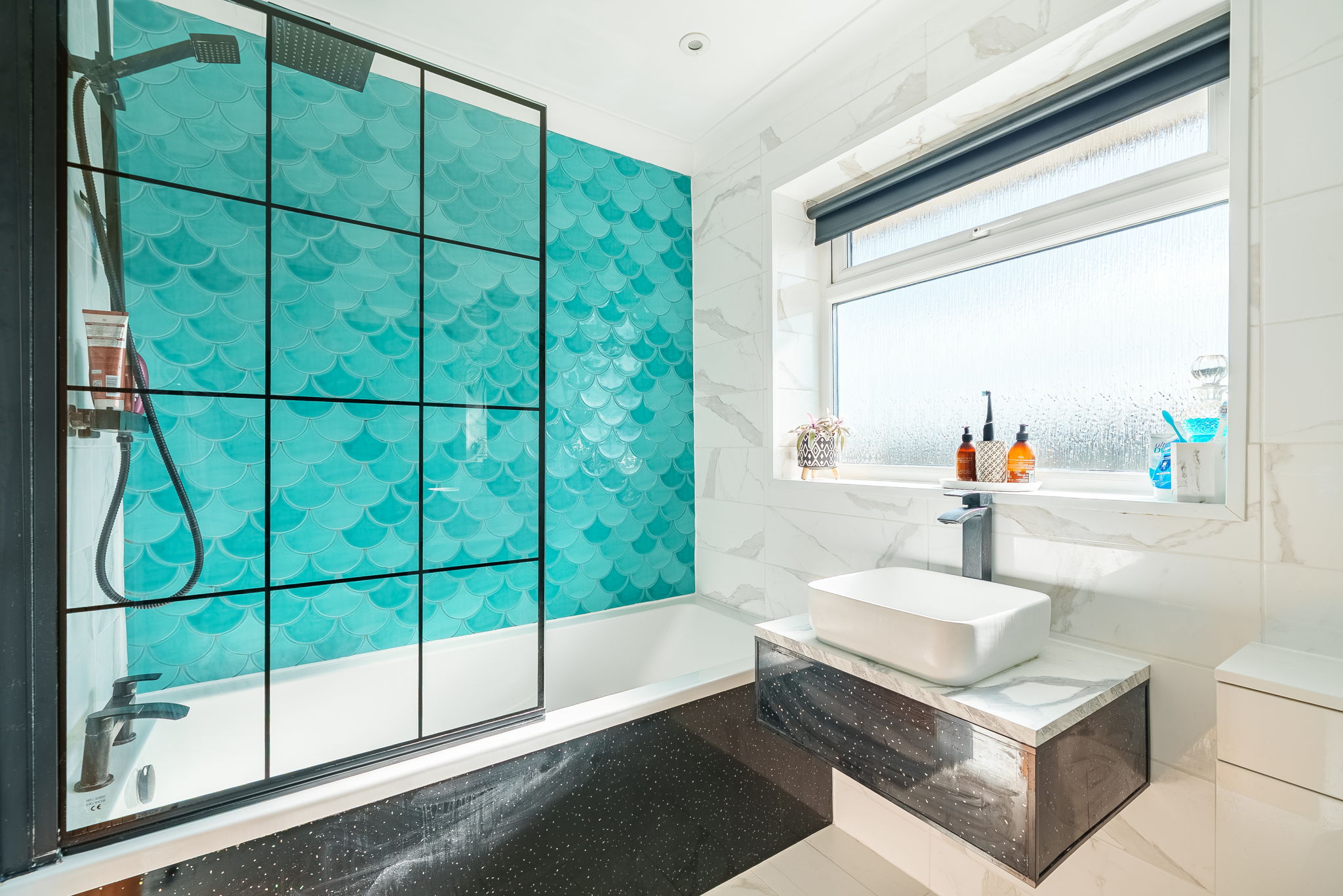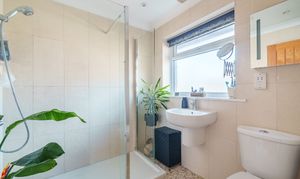 The central stairwell leads to the first-floor landing which leads to all four double bedrooms and the family bathroom. Bedroom one has a built-in wardrobe and the comfort of an ensuite shower room. The luxurious family bathroom has been fitted with a black and white suite comprising panelled bath with shower and shower screen, WC, and a basin unit with storage under.
