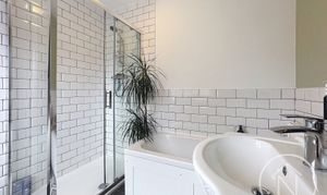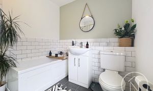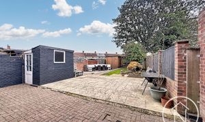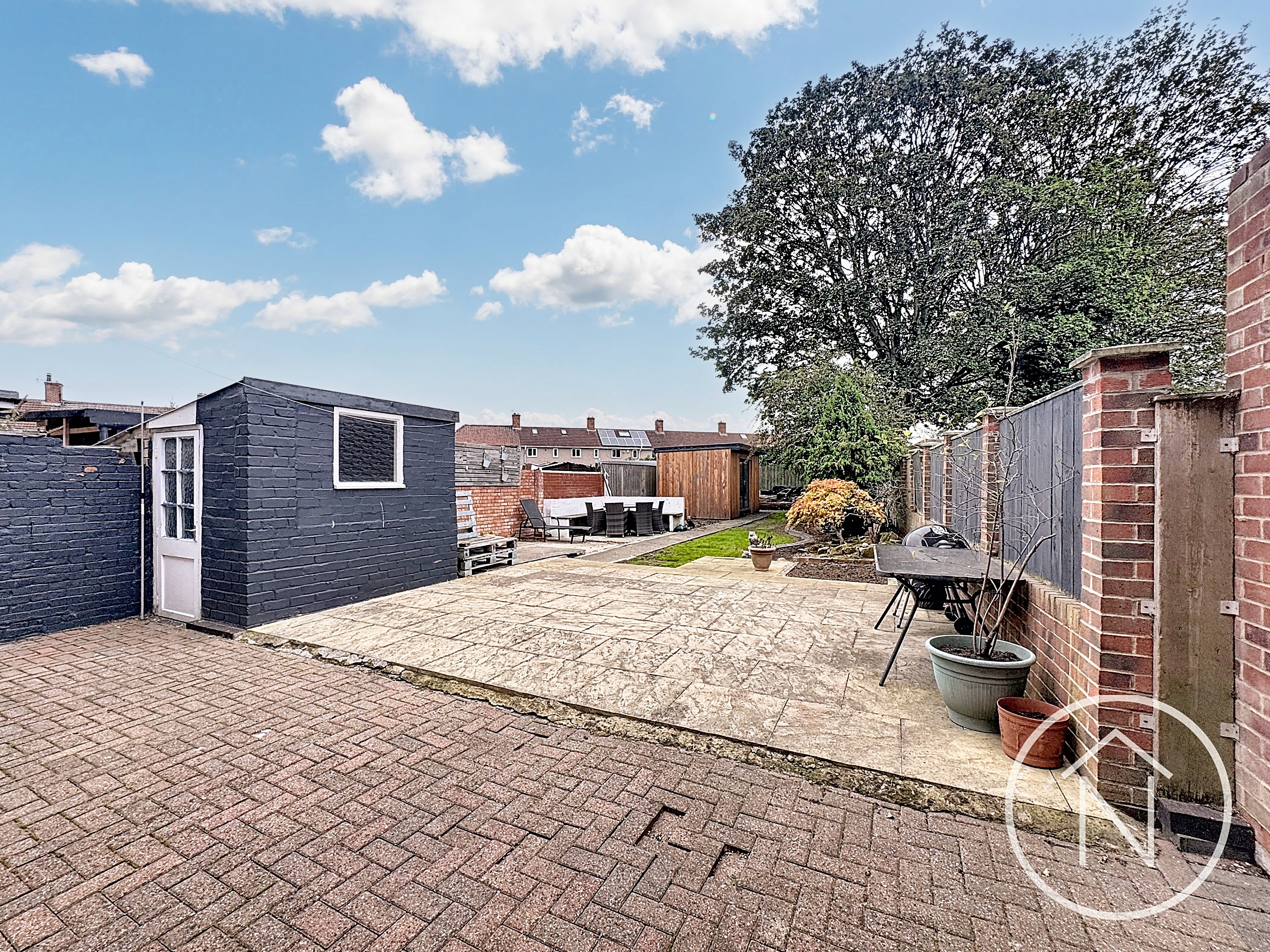 Upstairs, all three bedrooms benefit from large windows that fill the rooms with natural light, neutral décor, and practical built-in storage solutions, ensuring comfort and organisation. The modern bathroom is finished to a high standard, with classic white subway tiles, a bath and separate walk-in shower, and elegant fixtures for a spa-like atmosphere. The exterior impresses with a well-maintained, fenced garden boasting a spacious patio and lawn, an outdoor seating area, and a storage shed for added convenience. Off-road parking at the front of the property completes this family-friendly home, providing both security and kerb appeal. This property is ideal for those seeking stylish, low-maintenance living with excellent indoor and outdoor spaces.