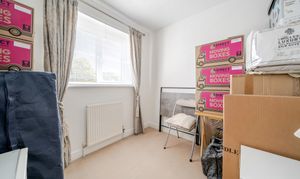 Upstairs, the home offers three well-proportioned bedrooms. The principal bedroom includes a fitted wardrobe, a deep storage cupboard, cleverly positioned over the stairwell, and an en-suite shower room with a corner shower unit, white suite and a chrome heated towel rail. The second bedroom enjoys a dual aspect with lovely views over the rear garden and beyond, while the third bedroom also offers pleasant rear-facing views. The family bathroom features a modern white suite with a bath and shower over, along with a chrome towel radiator.