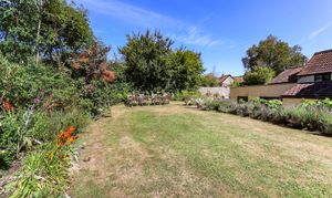 Outside – to the left of the cottage there is off street parking for 2 vehicles in addition to the double garage, which incorporates a workshop area to the rear along with good overhead storage, and a rear door opening onto the rear veranda and back garden. To the right side of the property a gate opens onto an enclosed area including a greenhouse, and another gate to the rear leads to a wonderful sheltered outdoor seating/dining area – an ideal place to sit and enjoy the evening sunshine. The professionally landscaped garden running across the back of the property includes paved and gravelled paths and deep enclosed raised beds planted with a range of productive English heritage vines that produce good quantities of juice for wine. Established shrubs and plants give a Mediterranean feel. Steps near the kitchen lead up to a level lawned garden area, and there are further steps near the garage. This section provides another place for outdoor dining, with established border plants and hedge/fence boundaries. Beyond is a field that provides additional space for outdoor activities or perhaps somewhere to keep chickens or for a smallholding.