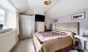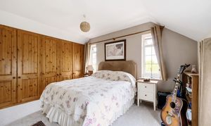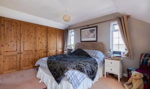 The principal bedroom is a good size with a wall of fitted wooden cupboards and a large ensuite shower room. There are 2 further double bedrooms, one of which has a storage space off that opens onto another small store room housing the boiler. There is a spacious family bathroom including a bath with shower over.