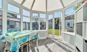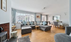 At the end of the hallway, the spacious lounge/diner awaits, complete with a log burner and elegant engineered oak flooring. Double doors from the living area lead to a modern conservatory, designed for year-round enjoyment with central heating.