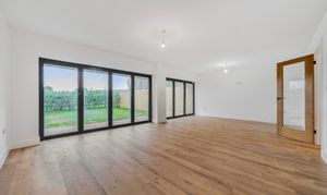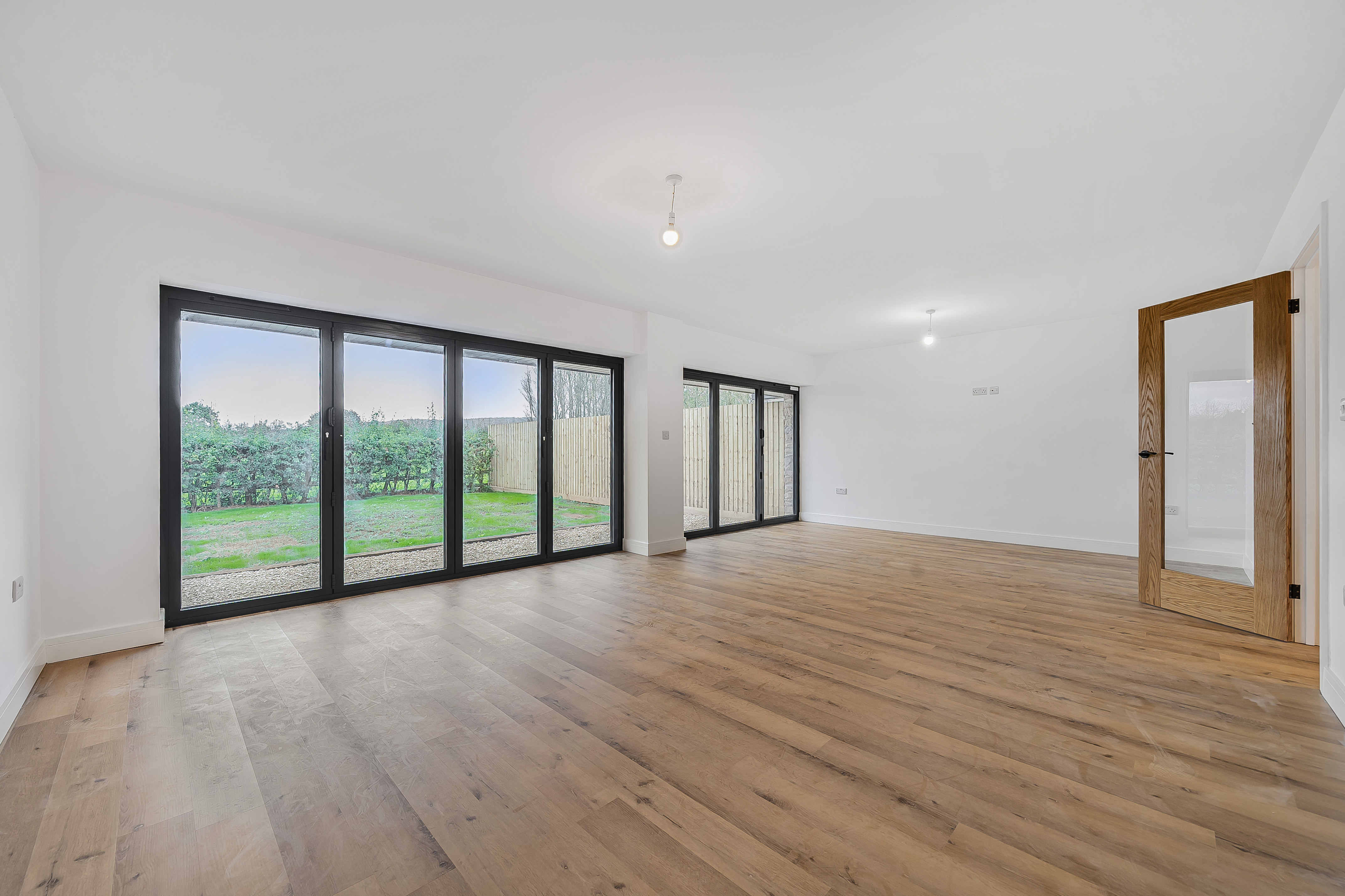 At the rear of the property there is a magnificent open plan reception/dining room which overlooks the garden, is the living room. A generous space it has two sets of bifold windows which seamlessly blend inside and out opening on to a gravelled terrace - the perfect spot of alfresco dining or relaxing with friends.