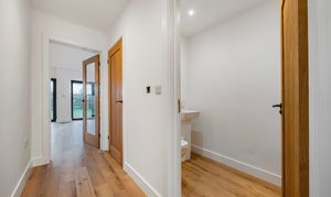To the right, there is a large understairs cupboard for coats and shoes and a practical downstairs cloakroom,with utility area with space for a washing machine and tumble dryer.