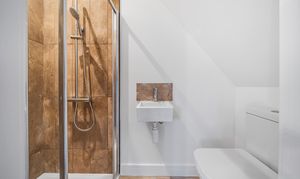 Rising to the first floor, you will find three generous double bedrooms. The principal bedroom boasts stunning long views over arable land towards the Mendip Hills and includes an ensuite shower room. A further bathroom with a separate shower and bath serves bedrooms two and three.