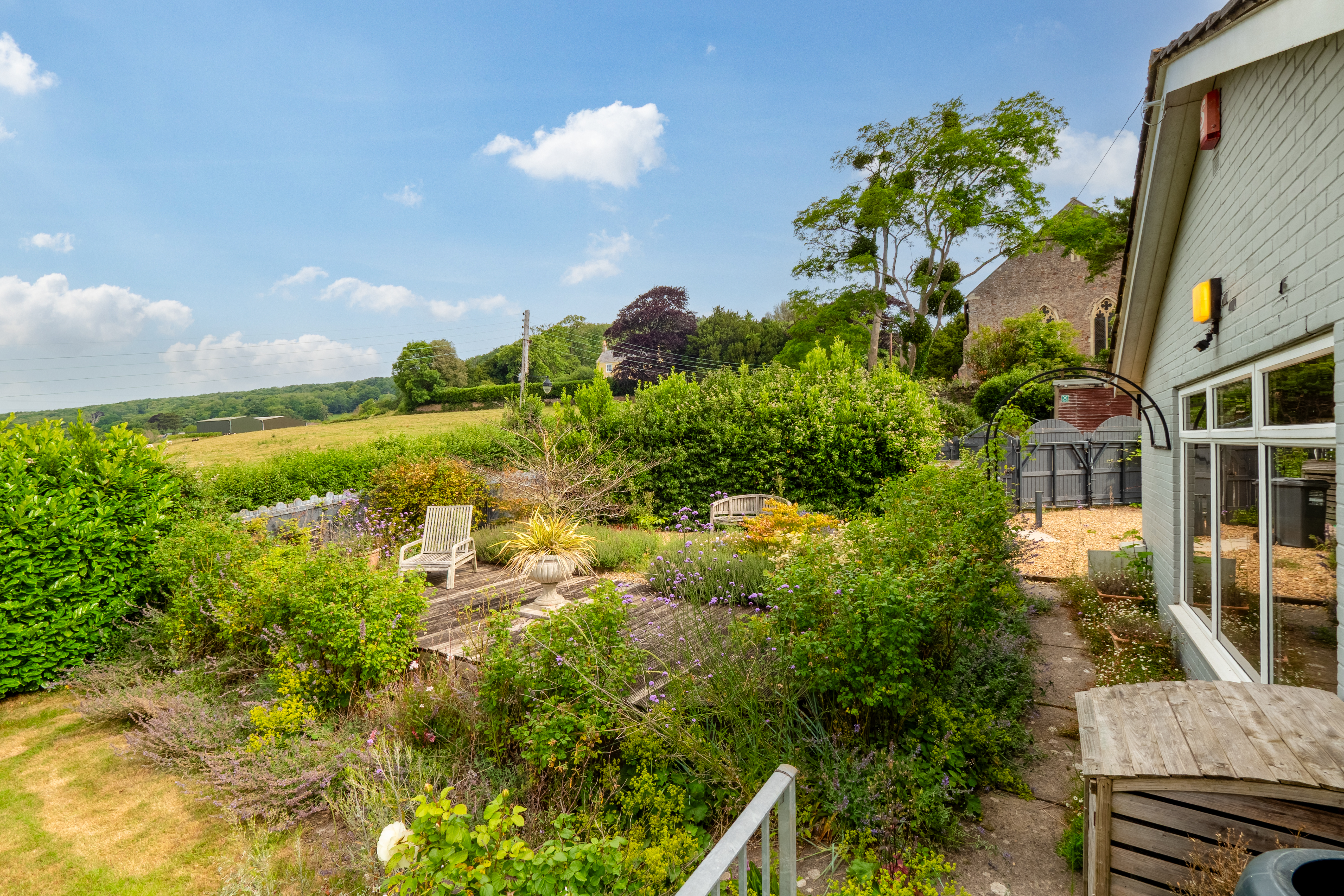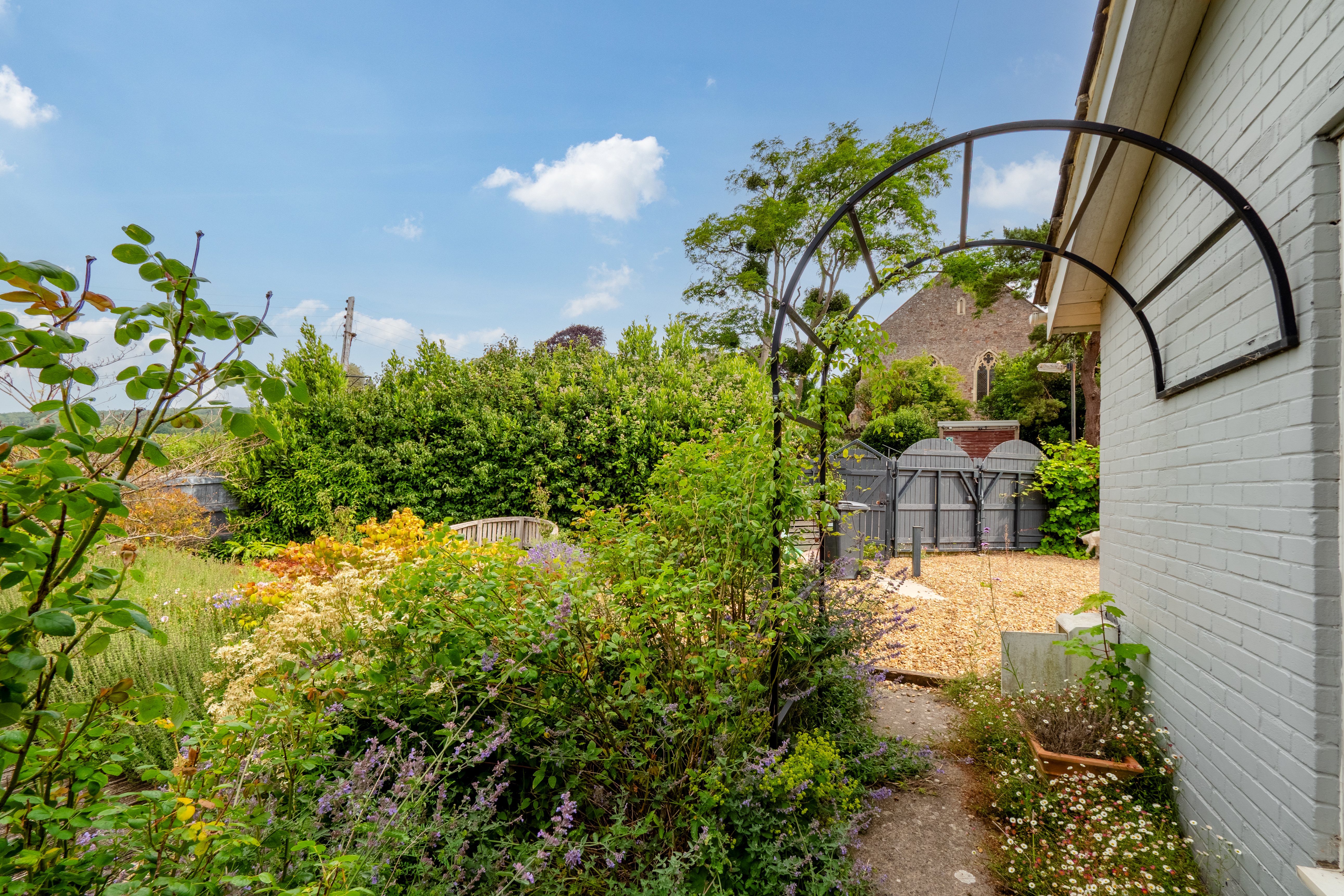 The grounds at Littlemor cover just over ¼ acre – a rare find in Wrington. The approach to the house is via neatly gravelled driveway that provides off-street parking for several cars. To the left is the garage with an up-and-over door. An attractive pergola leads around to the main garden, which is mainly lawned but has an abundance of seating areas to enjoy the unique views. There are also several borders planted with mature shrubs and plants, along with some wonderful specimen trees, including an impressive yew that adds both interest and privacy to the garden. Additionally, there is a small, gravelled courtyard garden accessible from the kitchen.