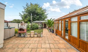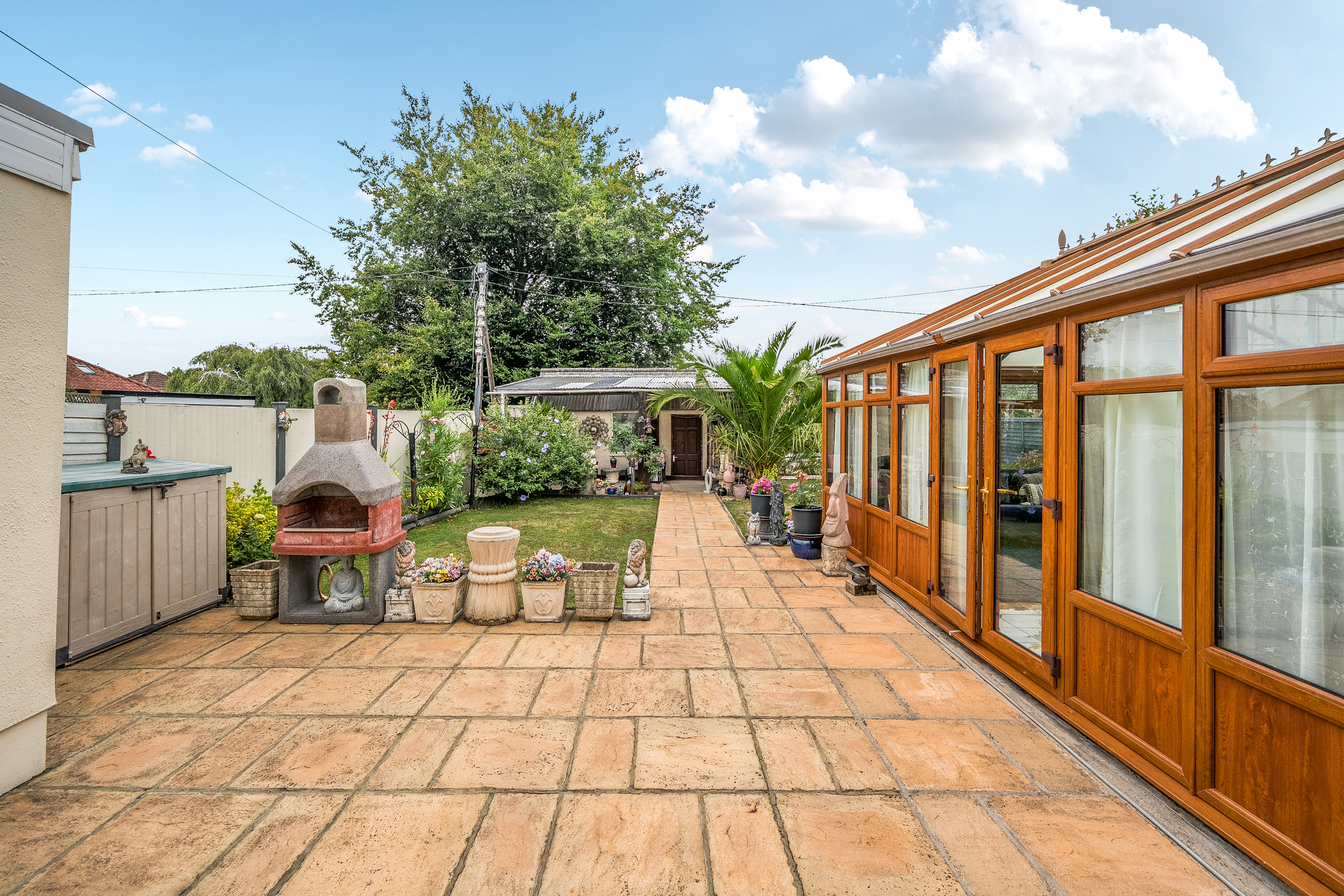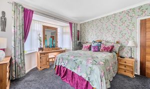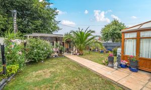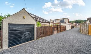 Outside the rear garden is a generous, level plot ideal for both relaxing and entertaining. A paved patio offers space for garden furniture and alfresco dining, with the remainder laid to lawn and framed by attractive planted borders. To the front, there’s off-road parking for two vehicles, while a shared drive leads to the rear where you'll find further parking, a single garage, and carport – ideal for a caravan or motorhome.