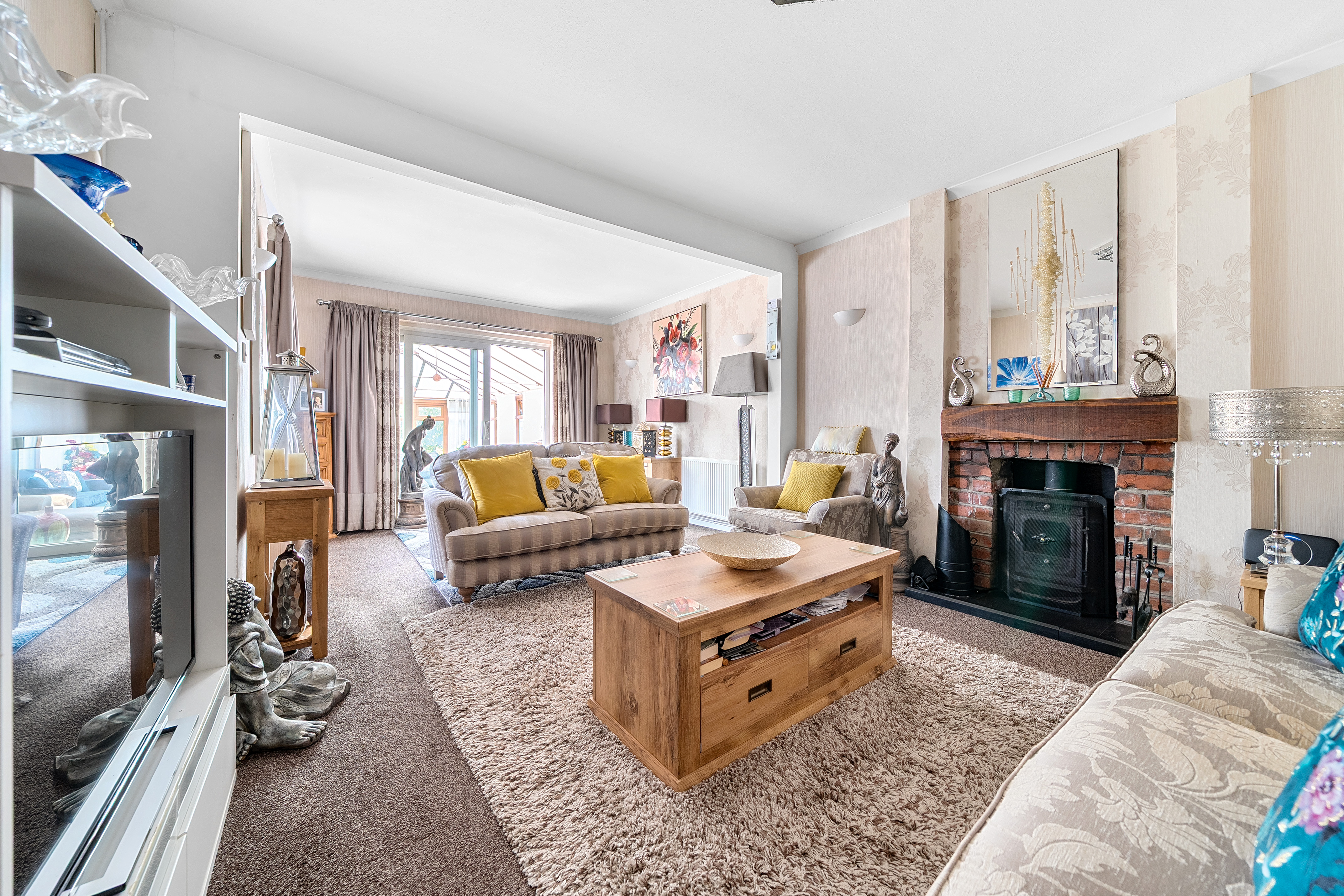 This deceptively spacious and beautifully versatile home offers a superb layout for modern family living, with multiple reception areas, generous bedrooms, and an excellent garden – all positioned in a convenient location with ample parking and flexible space inside and out. Entering through the front door, you’re welcomed by a porch that opens into a wide, inviting hallway. To the left, a well-proportioned living room features a charming bay window fitted with triple glazing and a striking multi-fuel burner, creating a cosy yet stylish atmosphere.