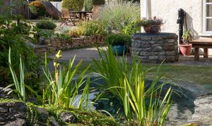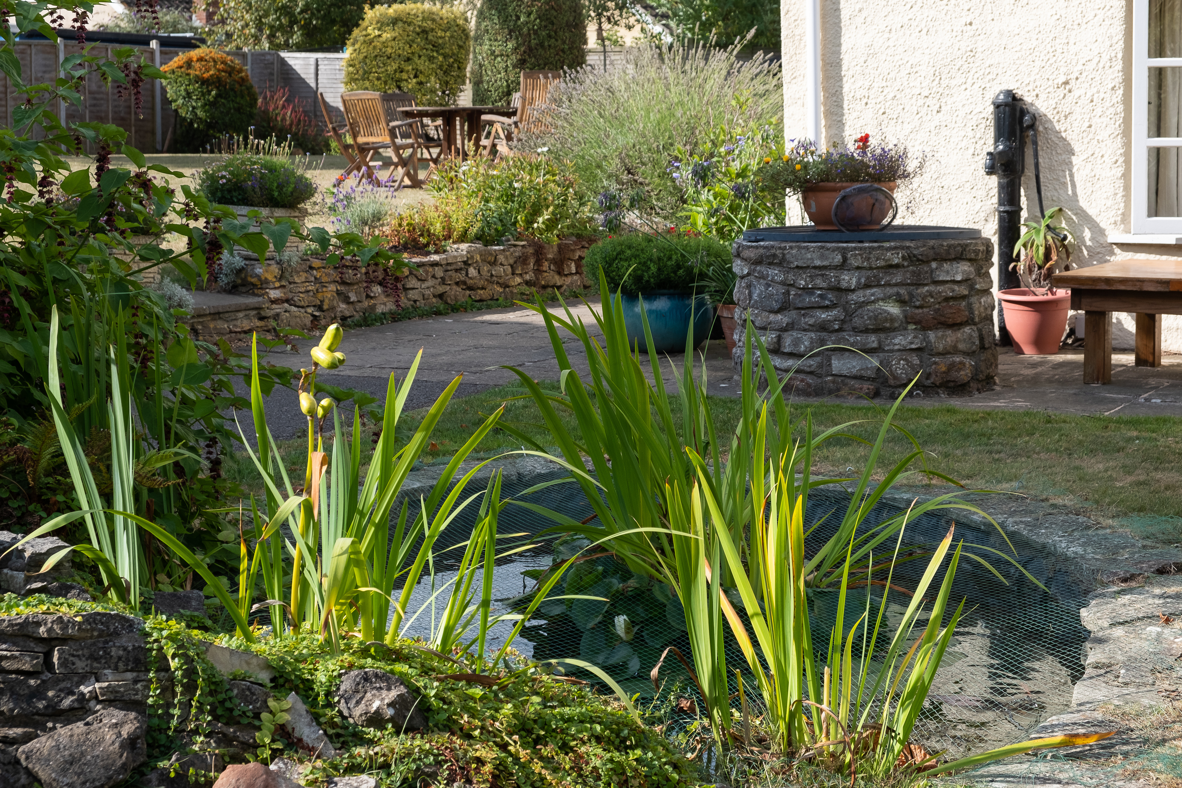 Outside – Accessed via a wooden 5-bar gate, to the front of the plot is good driveway parking in addition to the double garage with separate doors. The garden is full of colour and interest, characterised by a large raised lawned area and flagstone paths running across the front and to the sides of the house. Huge lavender bushes and deep herbaceous borders add colour and interest and there is a wide variety of mature trees, shrubs and bushes. To the front of the property is an area with a vegetable patch and a greenhouse and fruit trees including fig, plum and apple. A small pond provides a wonderful nature feature and a covered raised well and an old cast iron water pump indicate the historical origins of the property.