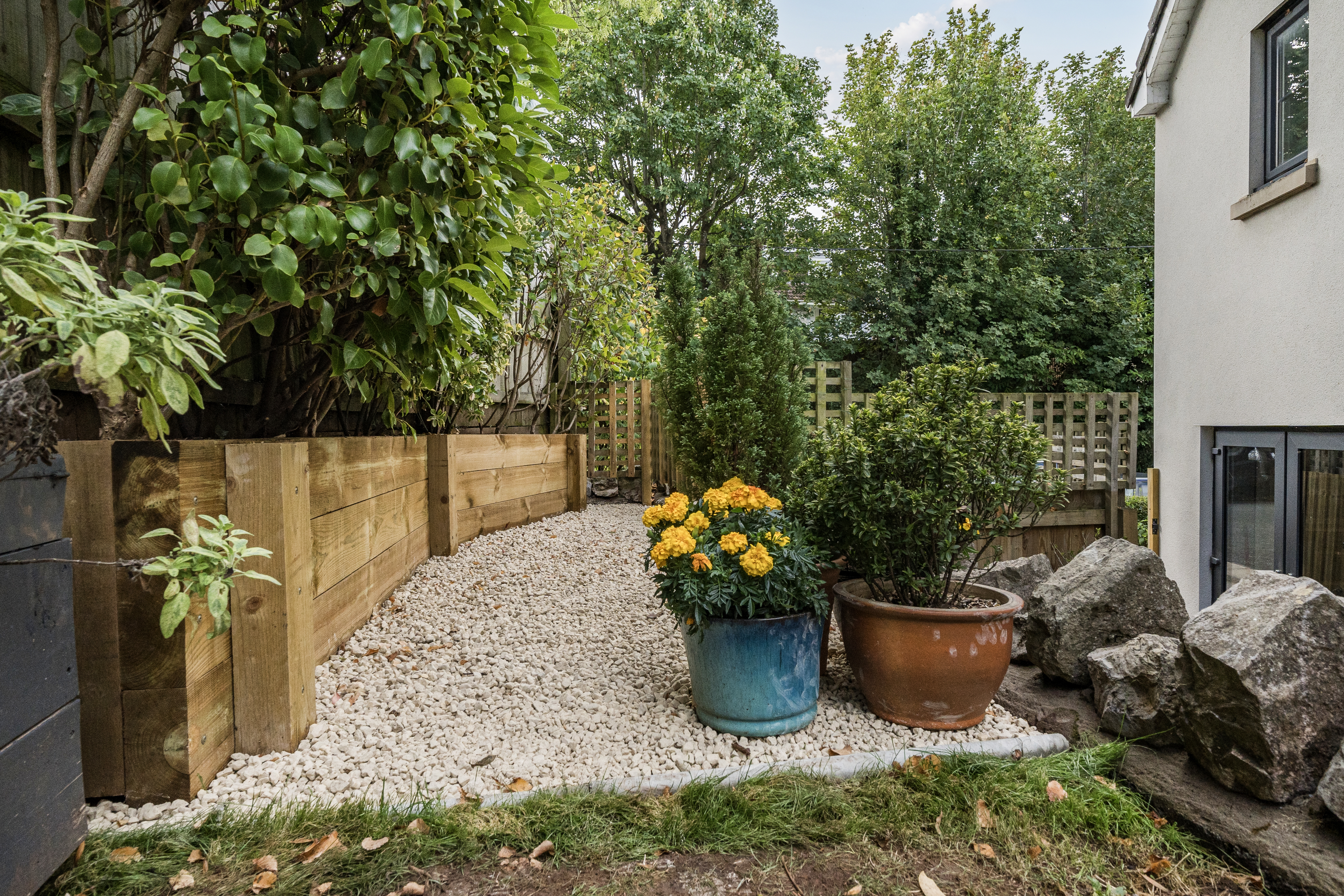 To the side of the house, a charming courtyard style patio provides a peaceful spot to sit and relax, featuring a beautiful stone wall and timber steps that lead up to the main garden. There is also convenient gated side access, allowing easy passage to the front of the property.
