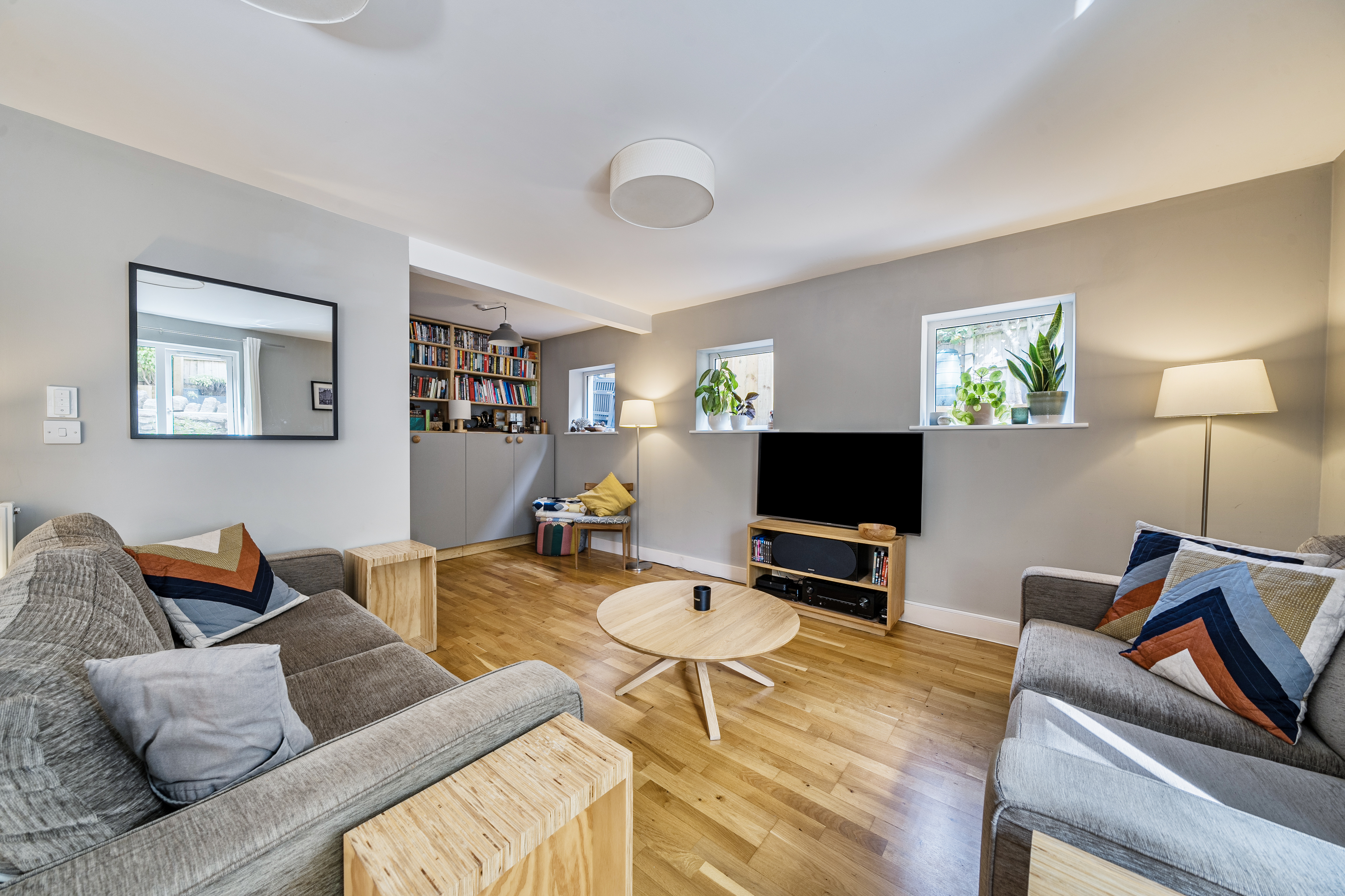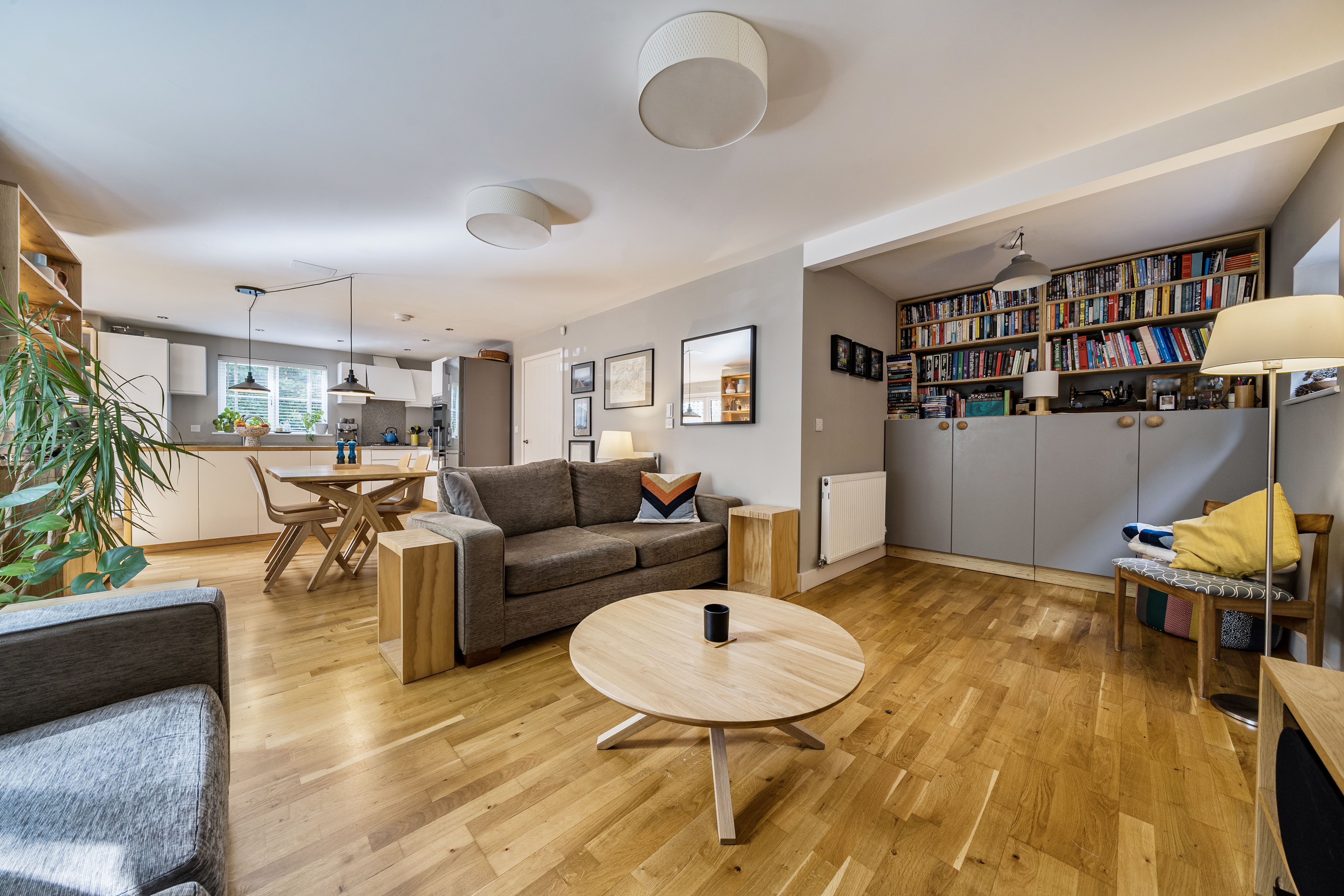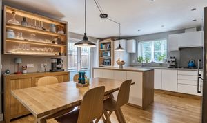 Upon entering, you are welcomed into a bright and inviting hallway, where you'll immediately find a large built in storage cupboard, ideal for coats and shoes, as well as a useful under stairs storage area. Engineered oak flooring flows effortlessly from the hallway through to the main reception spaces, creating a warm and cohesive feel.