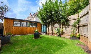 Outside - The garden offers a wonderful sense of privacy, enhanced by mature trees and established shrubs that create a natural, secluded feel. A well maintained lawn, bordered by solid wood sleepers, forms the central green space, while a large, hand built workshop, complete with lighting and power, adds excellent functionality for hobbies or storage.