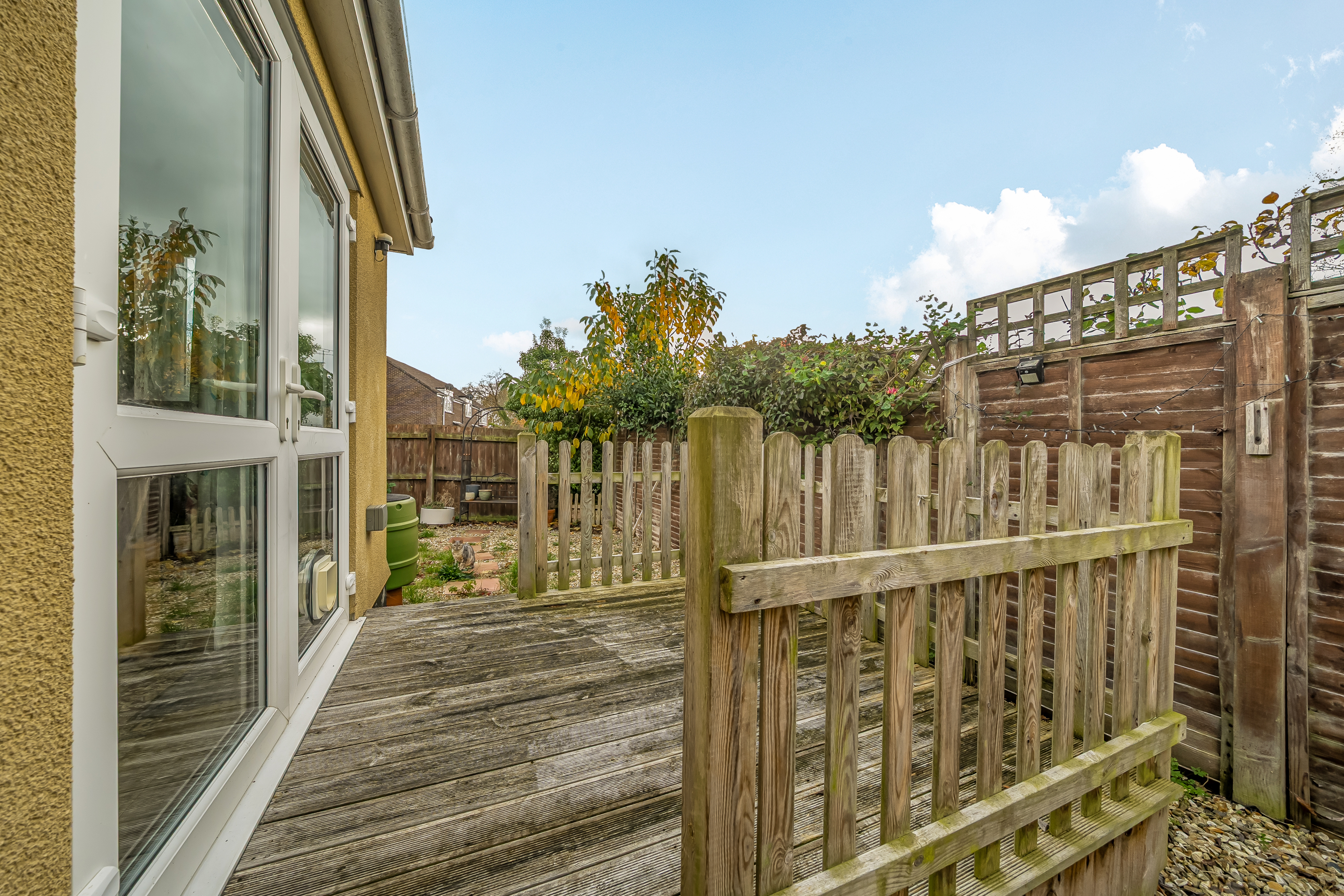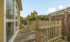 Outside, the property benefits from a parking space and several mature borders, thoughtfully planted with a mix of shrubs and plants. A side return provides access to the rear garden, which has been designed for low-maintenance living. From the sitting room, patio doors open onto a raised decked area, perfect for alfresco dining. The garden also includes a shed and a gravelled area.