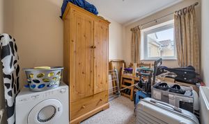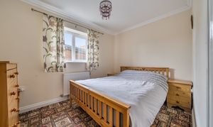 On entering the hallway, there is an immediate sense of space and light. To the right is the first bedroom, a single room with a pleasant front aspect that could easily be used as a home office. Behind this lies the principal bedroom, a generous double with views over the rear garden.