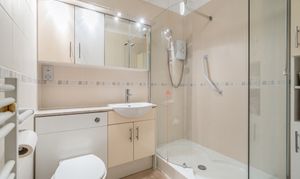 There are two bright double bedrooms, one with built-in wardrobes. The second bedroom is currently used as a reception room with an electric fire and surround, which could easily be moved to the lounge. A generous shower room with walk-in shower completes the accommodation.