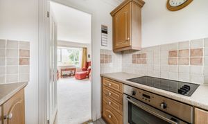 The flat features a spacious hallway with storage and airing cupboard leading to a light, airy lounge with room for a dining table. The kitchen, accessed from the lounge, offers a good range of wall and base units with electric oven and hob.