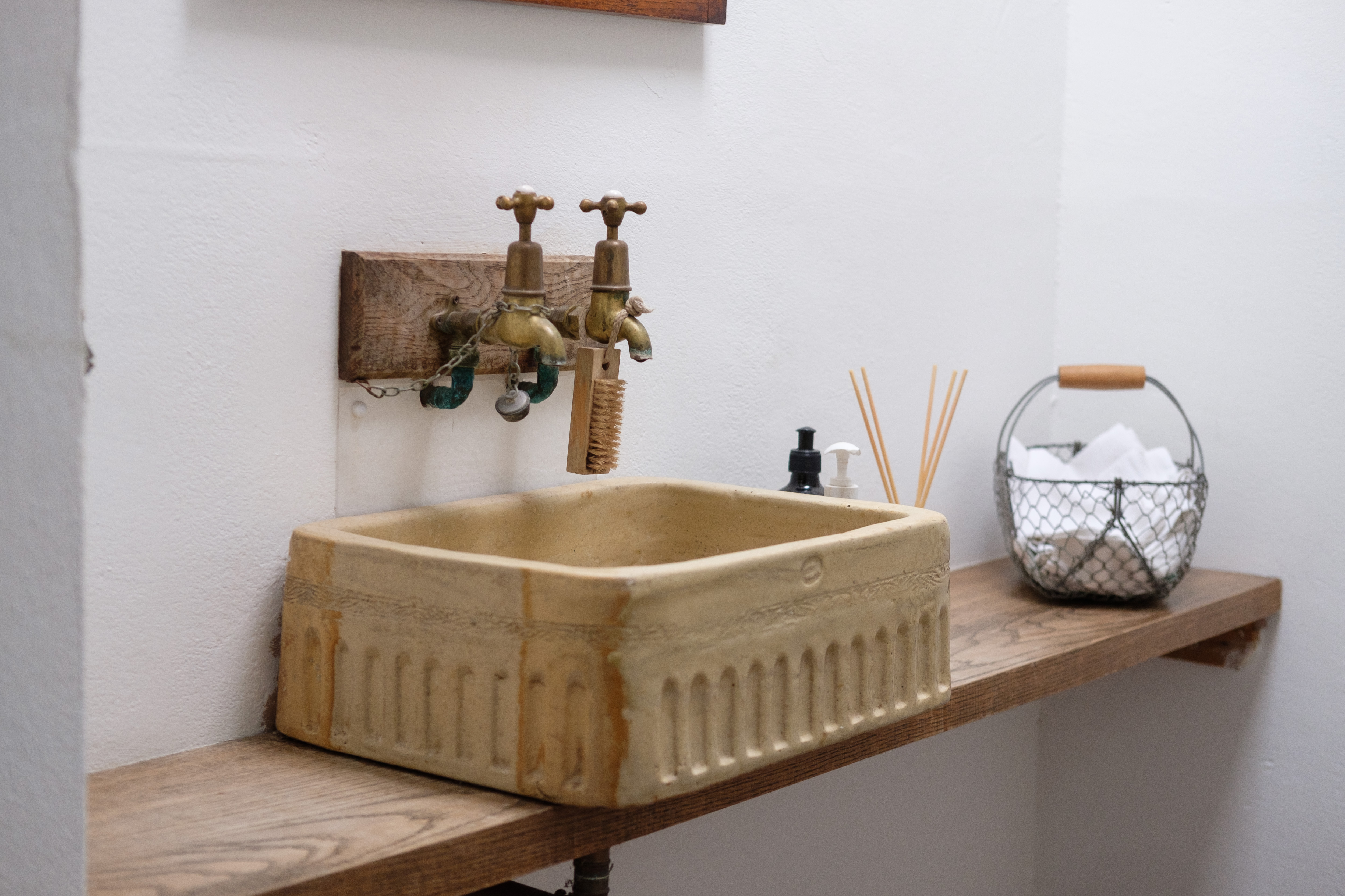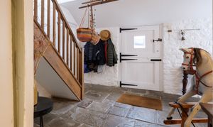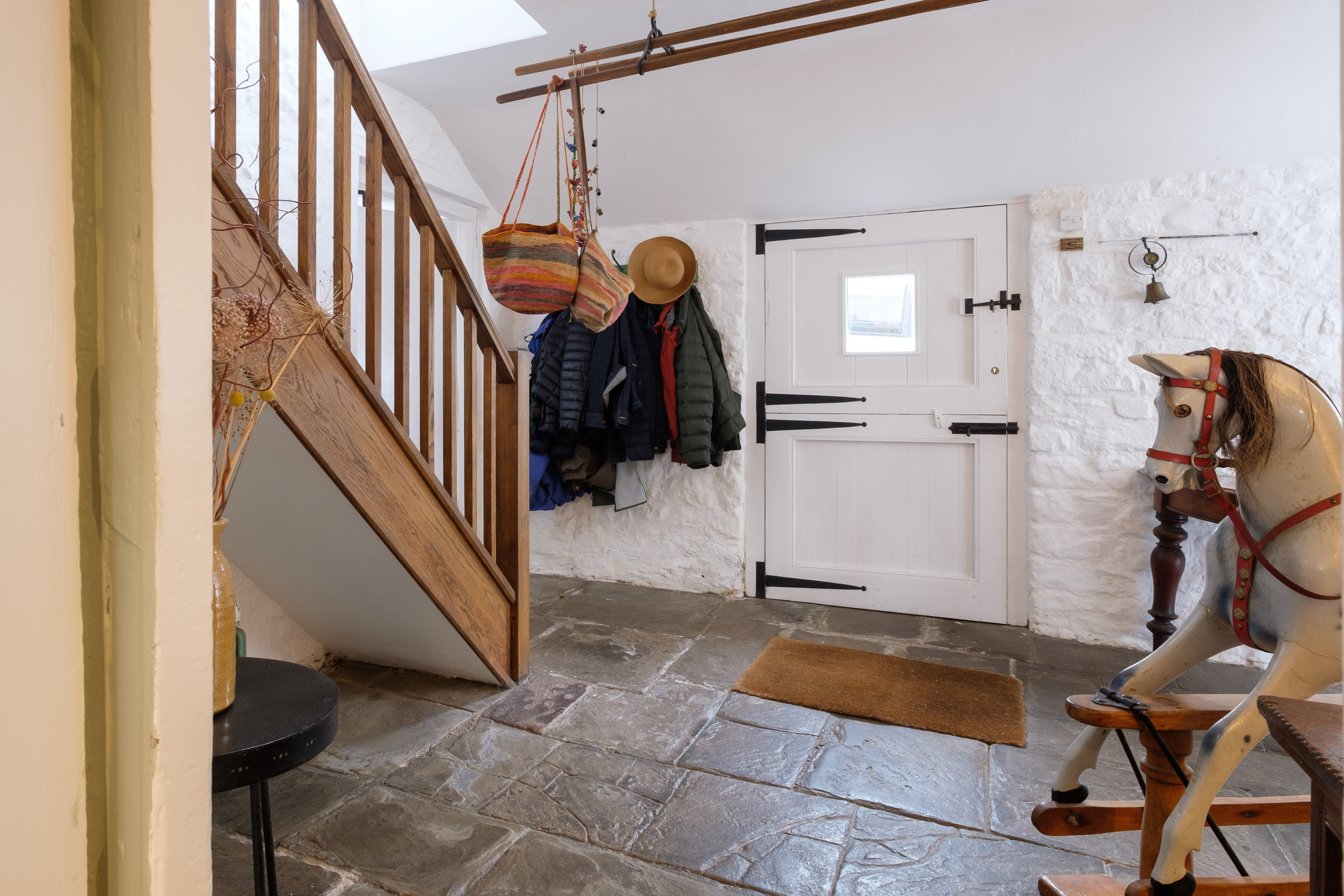 Returning to the hallway there is a further delightful hallway with gorgeous, whitewashed walls, flagstone floors and a traditional bread oven that is dressed to be a feature. Here there is also a downstairs cloakroom with distinctive reclaimed sanitary ware – lending character and appeal.