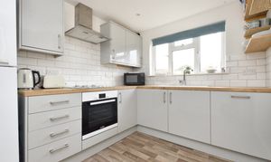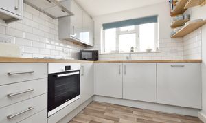 This well-maintained one bedroom ground floor flat offers stylish, modern living throughout. The interior is bright, airy and thoughtfully designed, beginning with a welcoming entrance hall that leads into a spacious sitting and dining room. The contemporary kitchen is positioned at the rear of the property with views over the garden and is fitted with modern units along both sides, a gas hob and oven, and an integrated dishwasher.