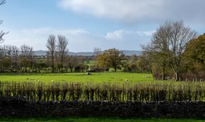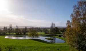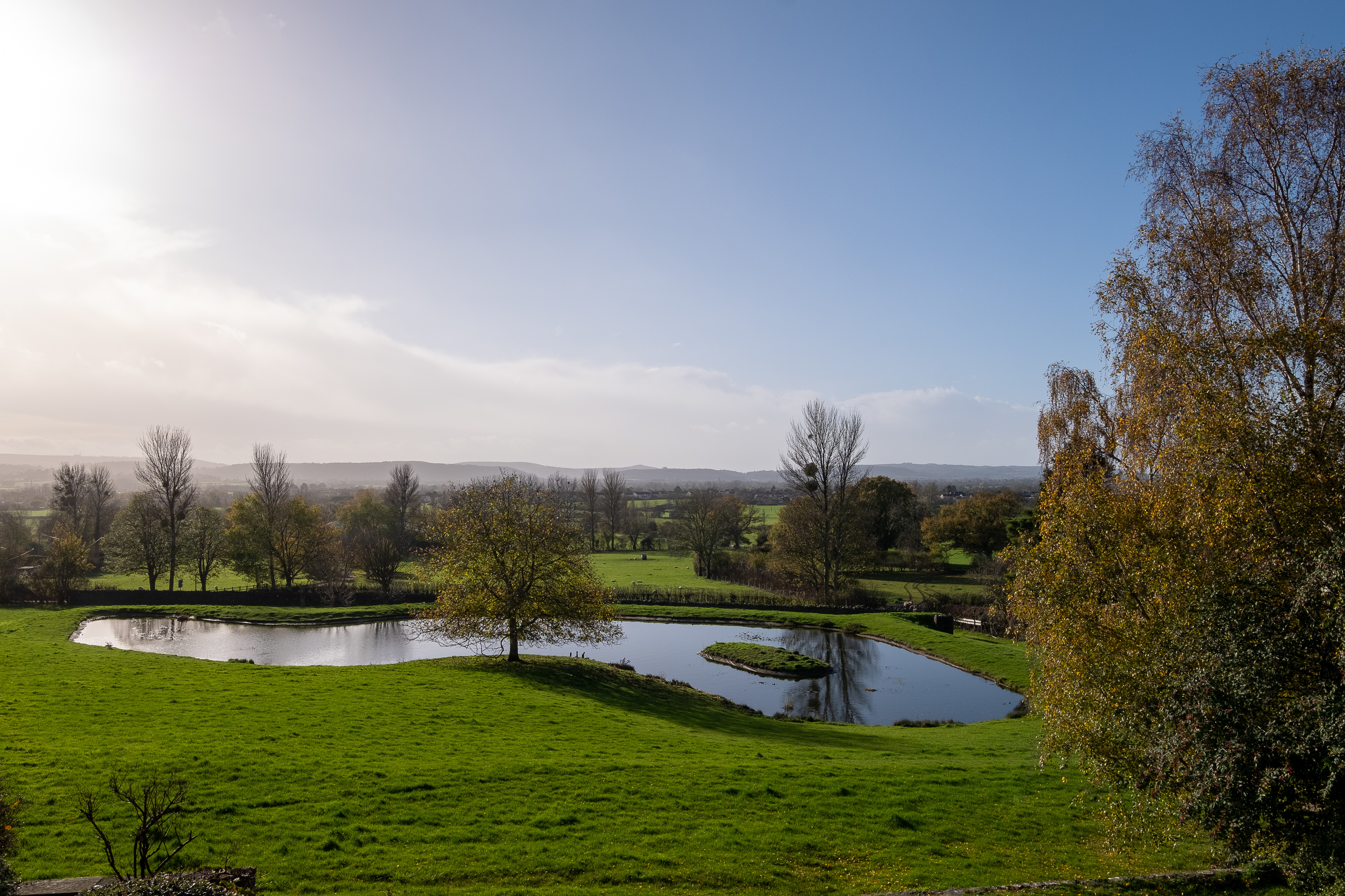Running across the back of the main house is a wide flagstone terrace bordered by low stone walling, which provides a fantastic location for alfresco dining and entertaining, or to simply sit and enjoy the surroundings. Below the terrace is a wide garden area, laid mainly to lawn and bordered by low stone walls and a selection of mature hedges and shrubs. Floating stone steps inset into the stone wall drop down to the rest of the grounds, which include an extensive range of mature trees and a rolling paddock (approaching 5 acres), bordered by natural hedges, low stone walls and metal rail fencing. The gently curving ornamental lake provides a superb wildlife habitat and the panoramic views across the Wrington valley towards Crook Peak and the Mendip Hills are simply stunning.