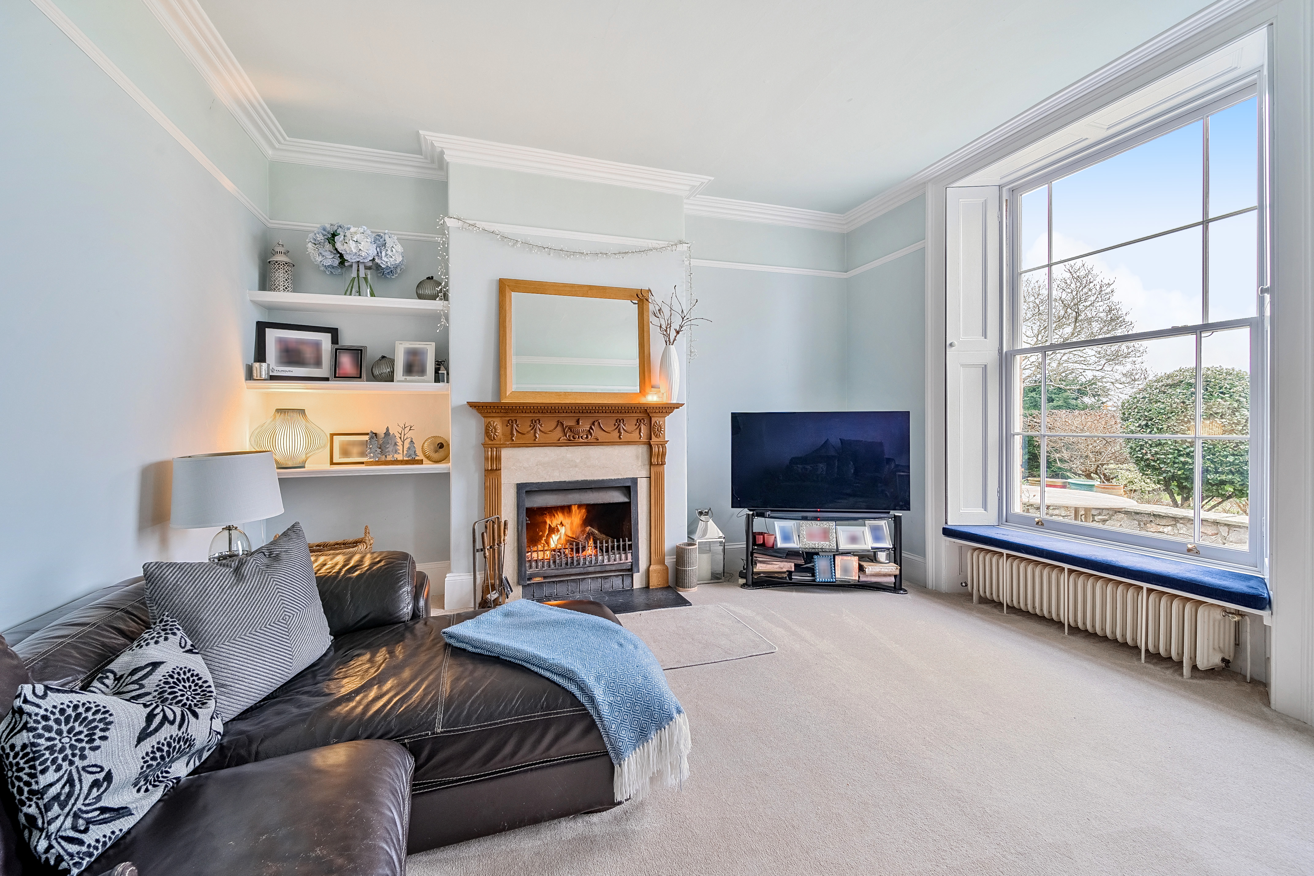 Highlights of Pitchings include the welcoming reception hall with flagstone floor, and the generously proportioned dining and sitting rooms, both with open fireplaces and superb panoramic views through tall, wide sash windows with working shutters.