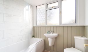 To the right of the kitchen is a small rear lobby with direct access to the garden, perfect for muddy boots or pets. Off this space is a useful utility room with a Belfast sink and space for a washing machine and tumble dryer, as well as a separate WC. There is also an area suitable for a study nook or boot room, along with internal access to the garage. The garage is equipped with lighting and electricity and features an up and over door.