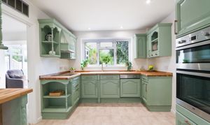 A welcoming front door opens to a spacious and light hallway, with an under stairs storage area and stairs rising to the first floor. To the left, a well proportioned living room features a central fireplace and a large front facing window that floods the space with natural light while offering open views across neighbouring farmland. The tasteful, neutral décor continues throughout the house, creating a calm feel. To the rear of the property is the kitchen, which is fitted with traditional painted wooden units, solid oak worktops, a double oven, electric hob, integrated dishwasher, chrome towel radiator, and has space for a freestanding fridge.