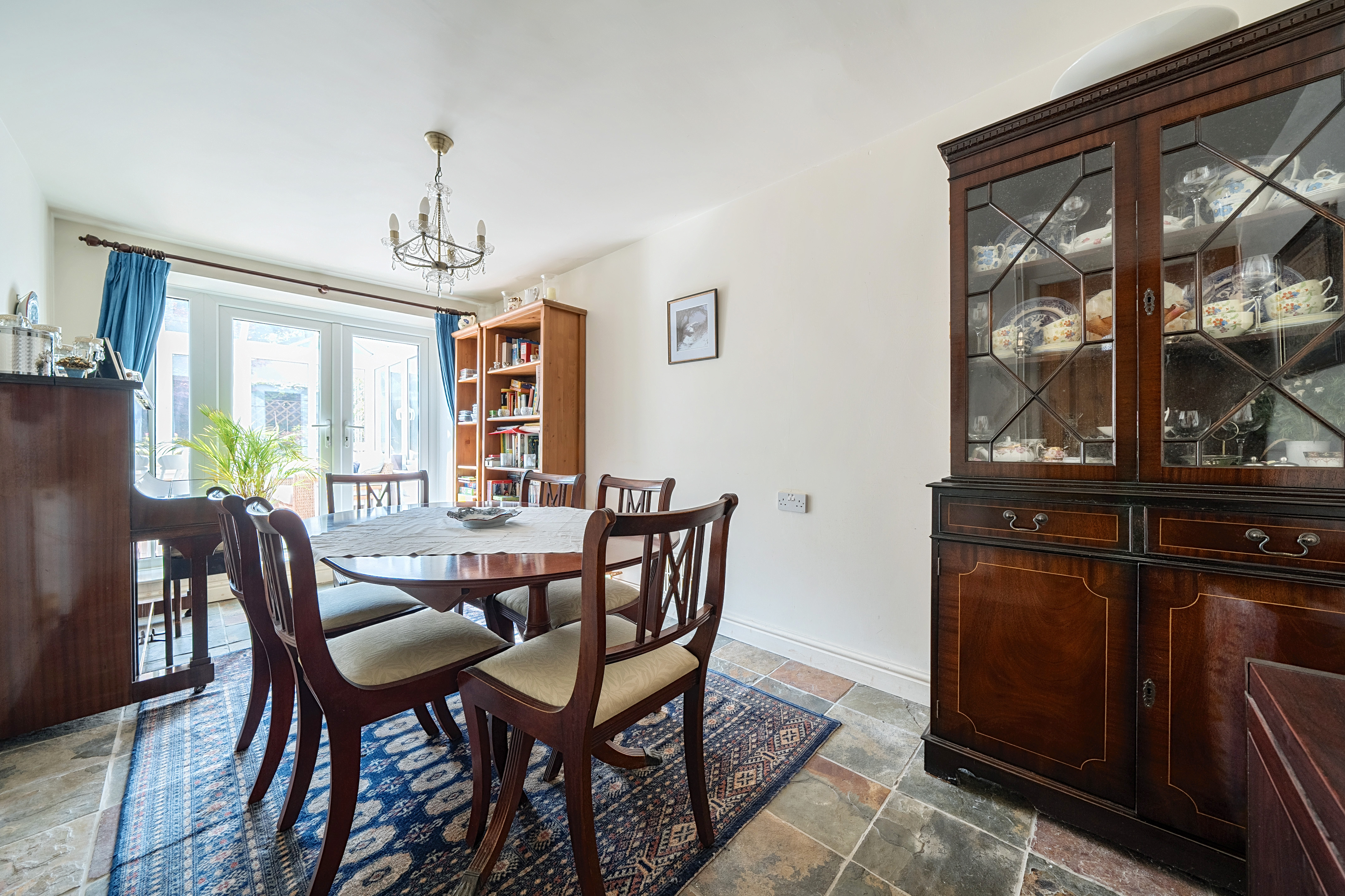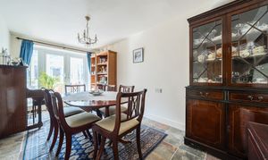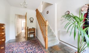 Continuing down the hall, you'll pass a convenient shower room and a generous utility room. At the rear are two reception rooms, a spacious dining room is on the right and living room to the left which is perfect for entertaining, with a cosy log burner for colder evenings and French doors leading to the garden. Both rooms have direct access to a lovely conservatory; a versatile space ideal for enjoying sunny days or relaxing during a cold winters evening.