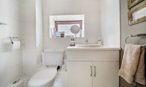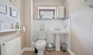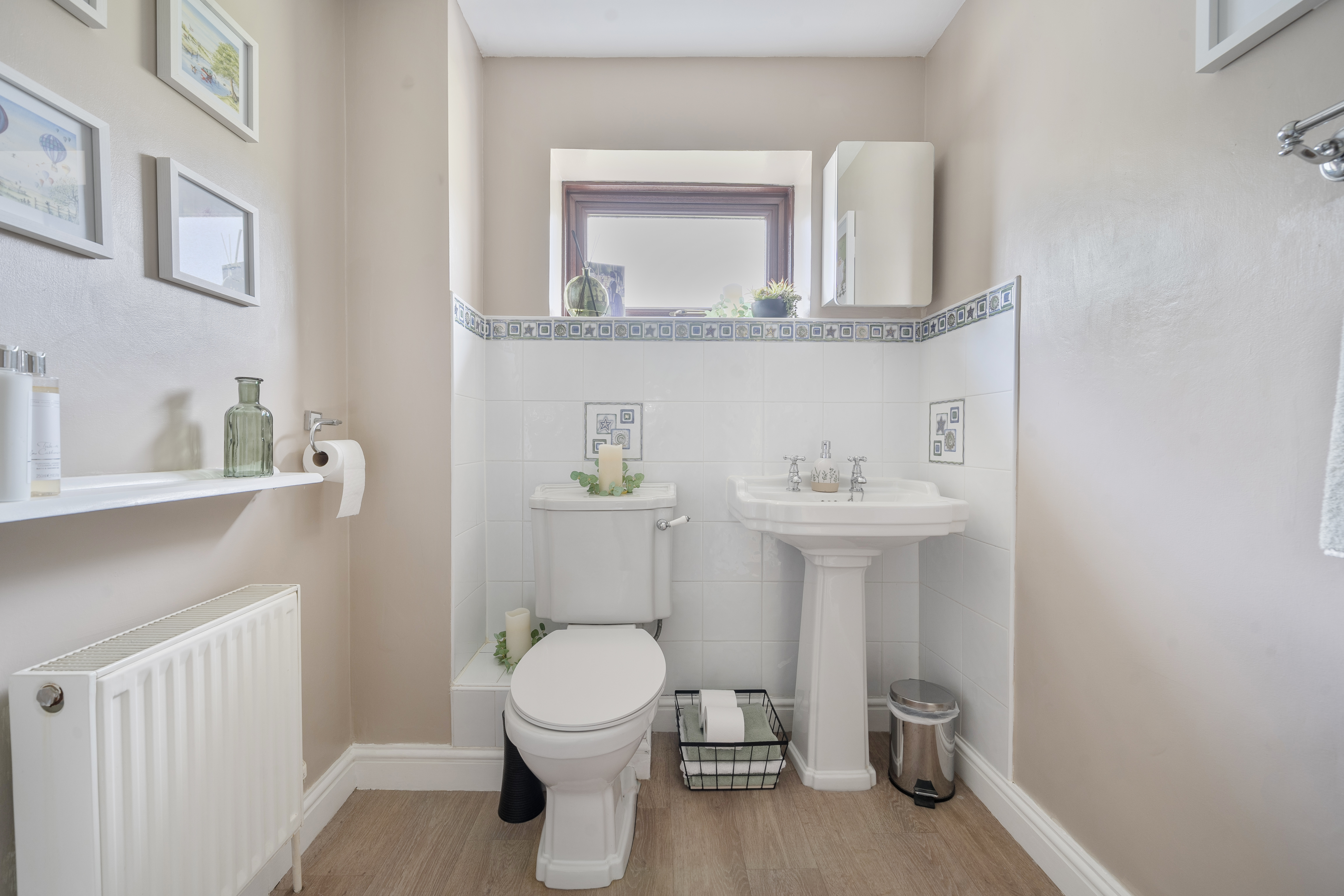 Also on the ground floor is a well-appointed shower room with vanity sink unit and a cubicle shower, offering practicality for family life and potential for flexible living arrangements. A large storage cupboard completes the downstairs accommodation, providing excellent space for household essentials or additional pantry storage.
