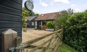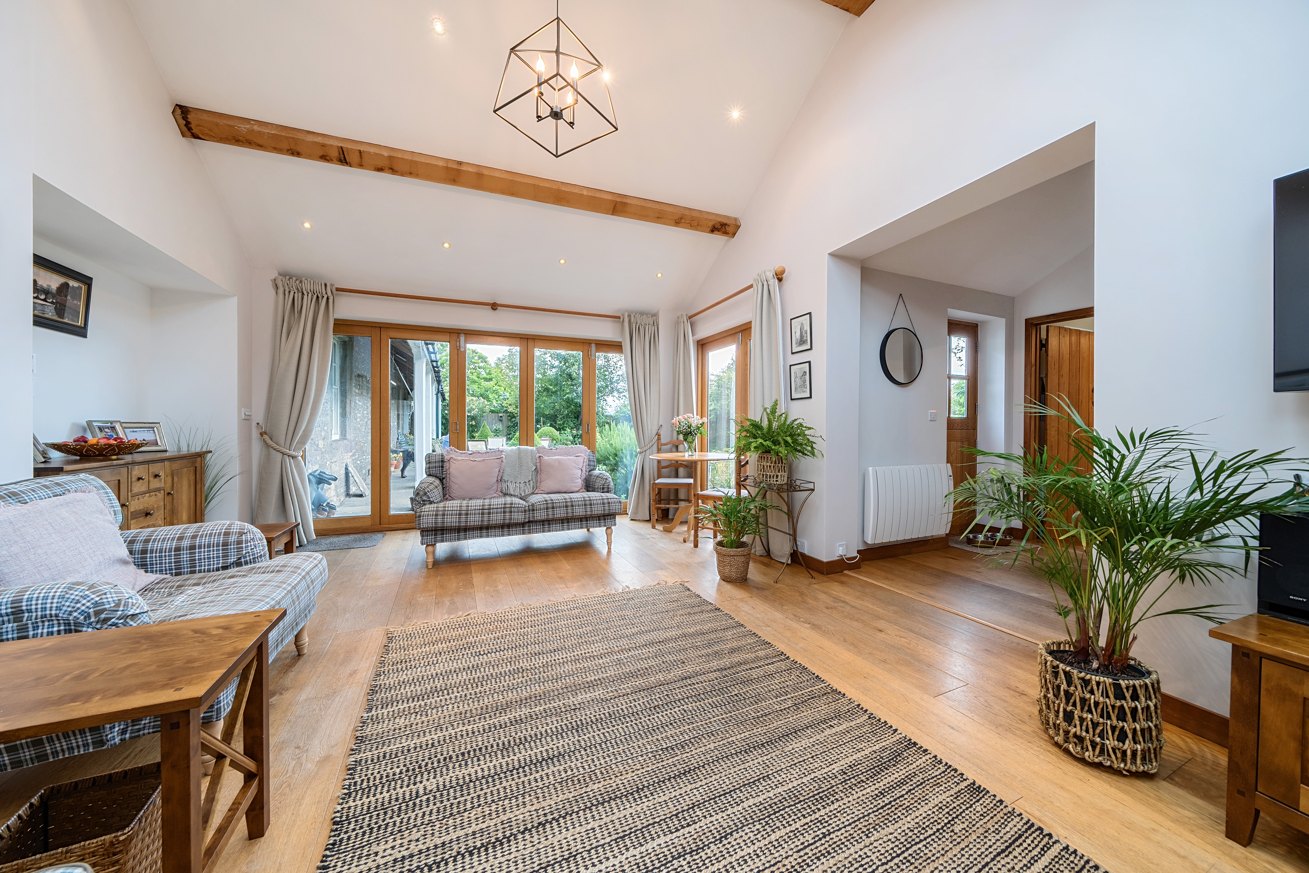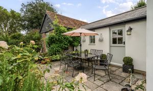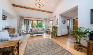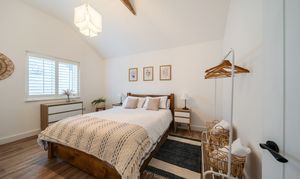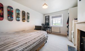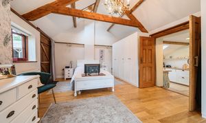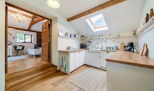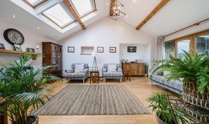 Attached to the main residence is a luxurious one-bedroom annexe that could with one simple stud wall removal be re-integrated into the main family home. Recently renovated to an exceptional standard, it features a stunning sitting room with bi-fold doors at the front, a vaulted ceiling, and a beautiful oak floor. Beyond the sitting room, an inner hallway connects the front and rear doors and leads to a luxurious shower room. The apartment's kitchen, equipped with a range of fitted units and appliances, complements the period charm perfectly. The dual aspect bedroom, measuring 20'7", is magnificent with its vaulted ceiling, exposed beams, modern fireplace, and French doors opening to the garden. This space offers much more than the typical annexe.
