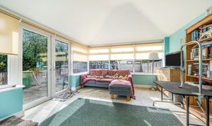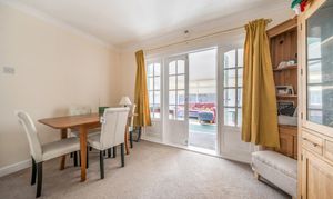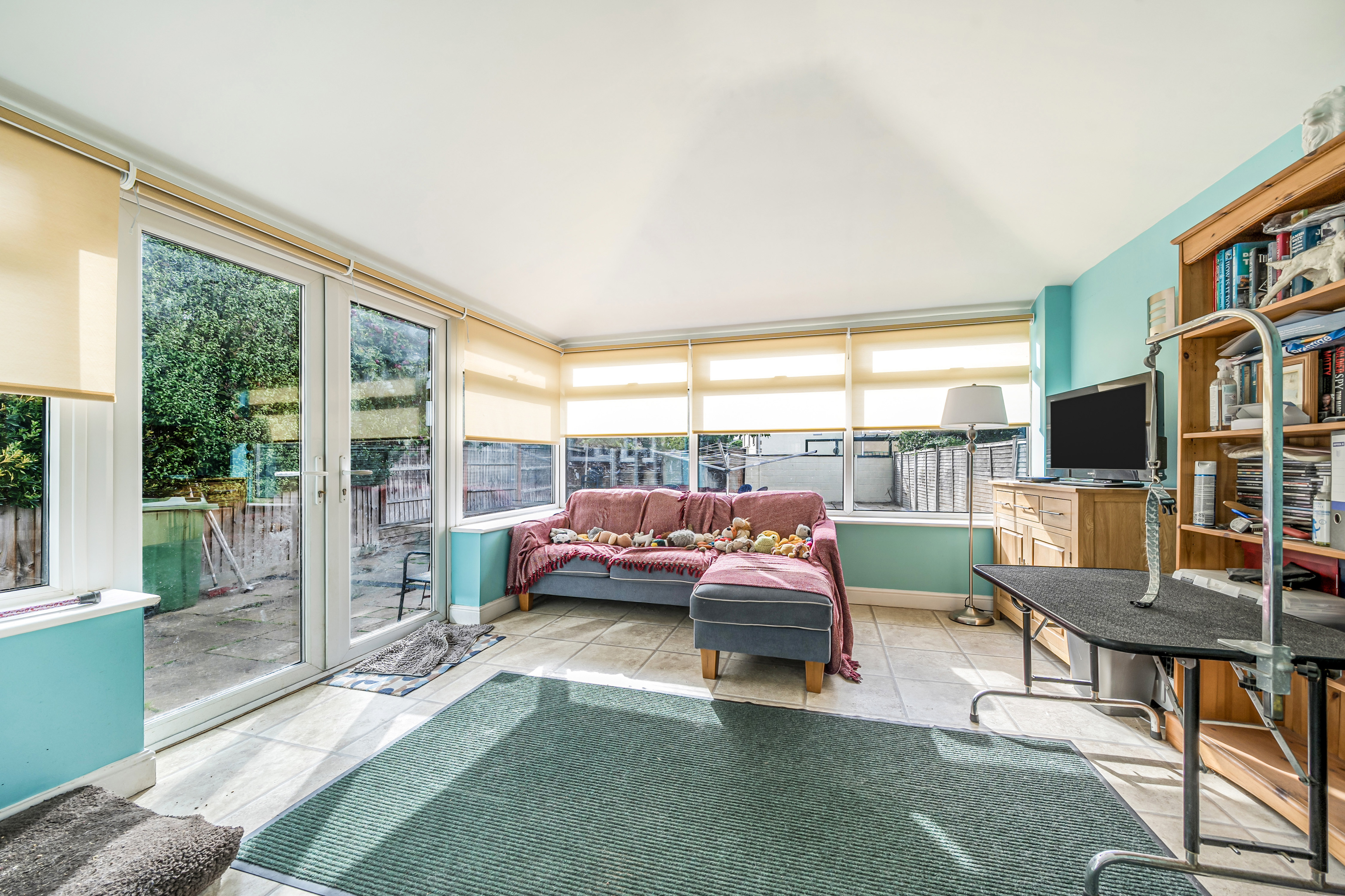Beyond the dining room, the garden room provides a versatile additional living space. It has been upgraded with a fully insulated solid roof and is fitted with a radiator connected to the central heating system, making it a comfortable room to enjoy all year round. Double doors open directly onto the rear garden, creating a seamless connection to the outdoors.