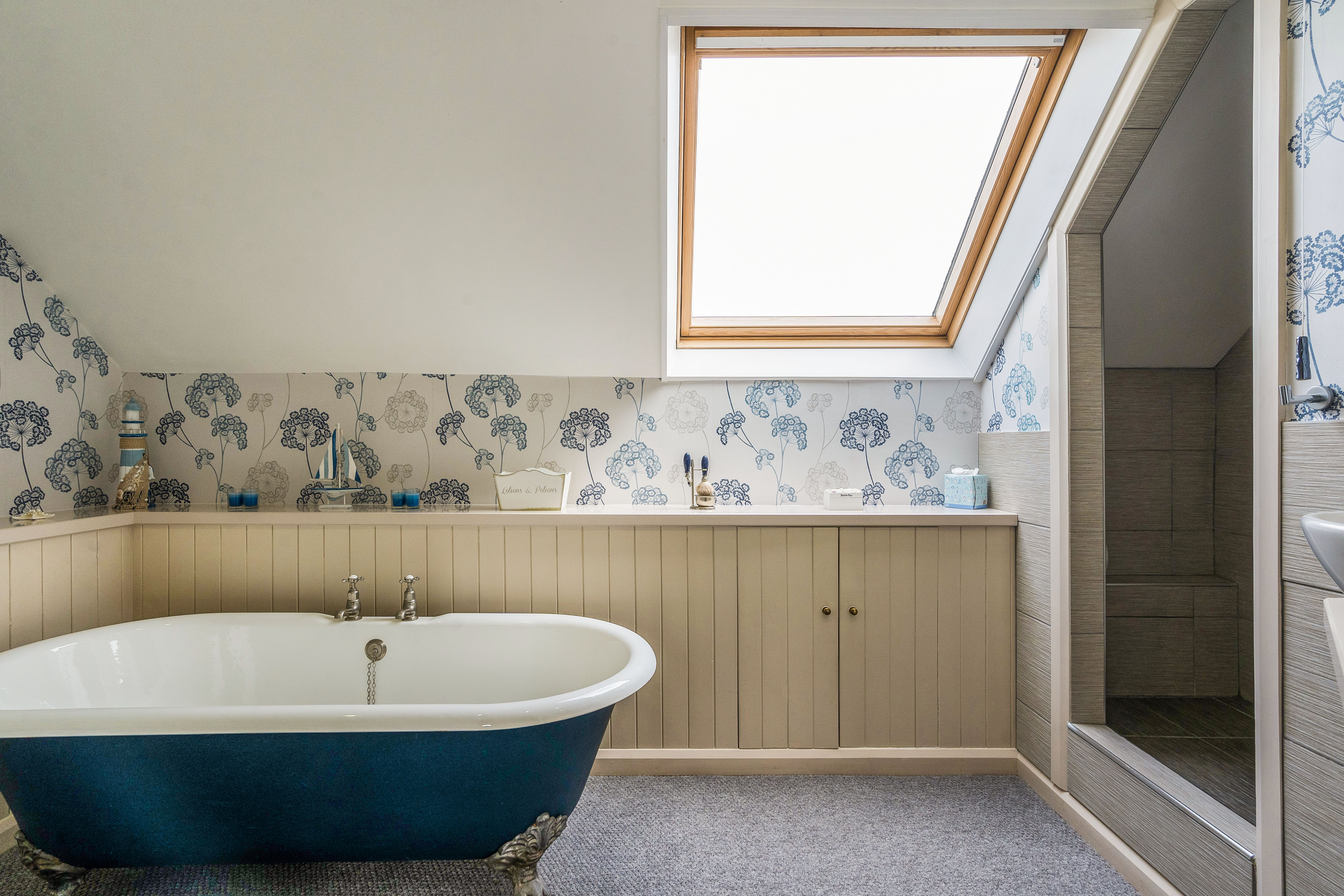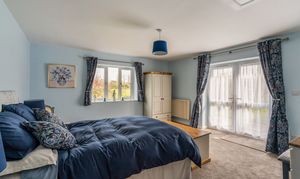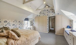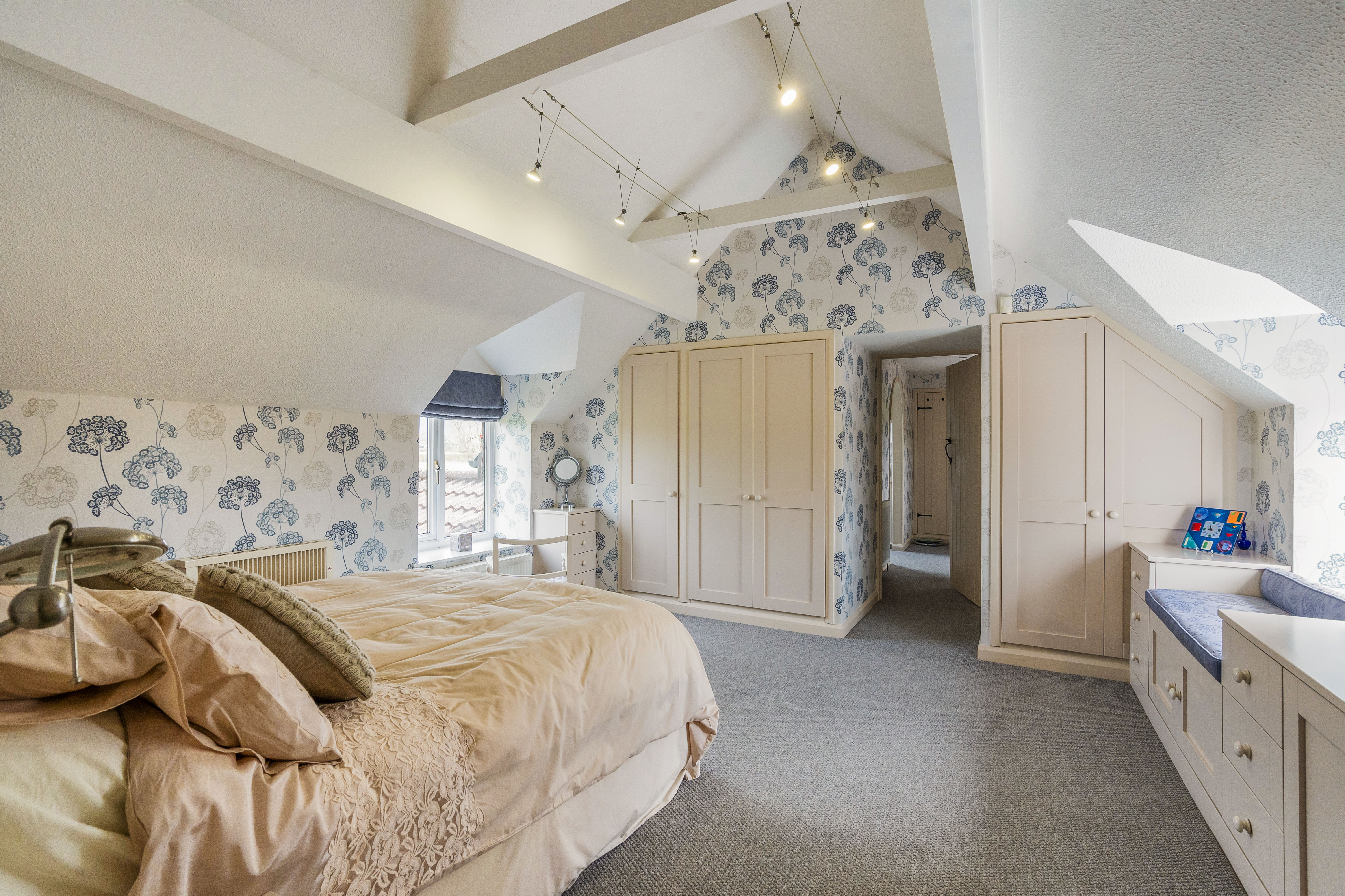 A staircase rises to the spacious gallery landing, the perfect place to relax and enjoy the long views and on to the light and airy dual aspect principal bedroom where you can catch a glimpse of Yatton church. An en suite bathroom with roll top bath and separate shower together with well-planned dressing area with lots of practical storage give this area a touch of luxury.