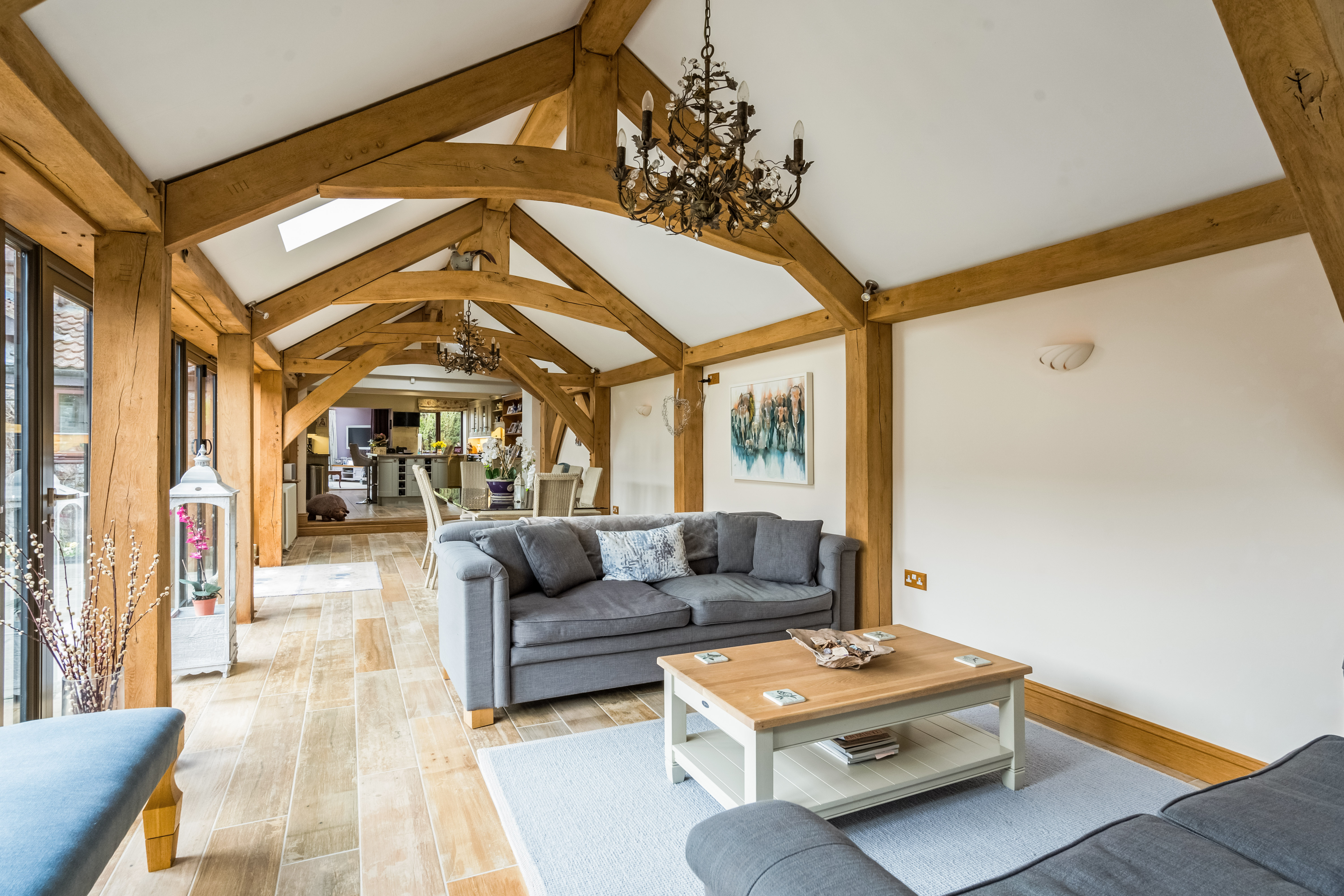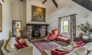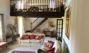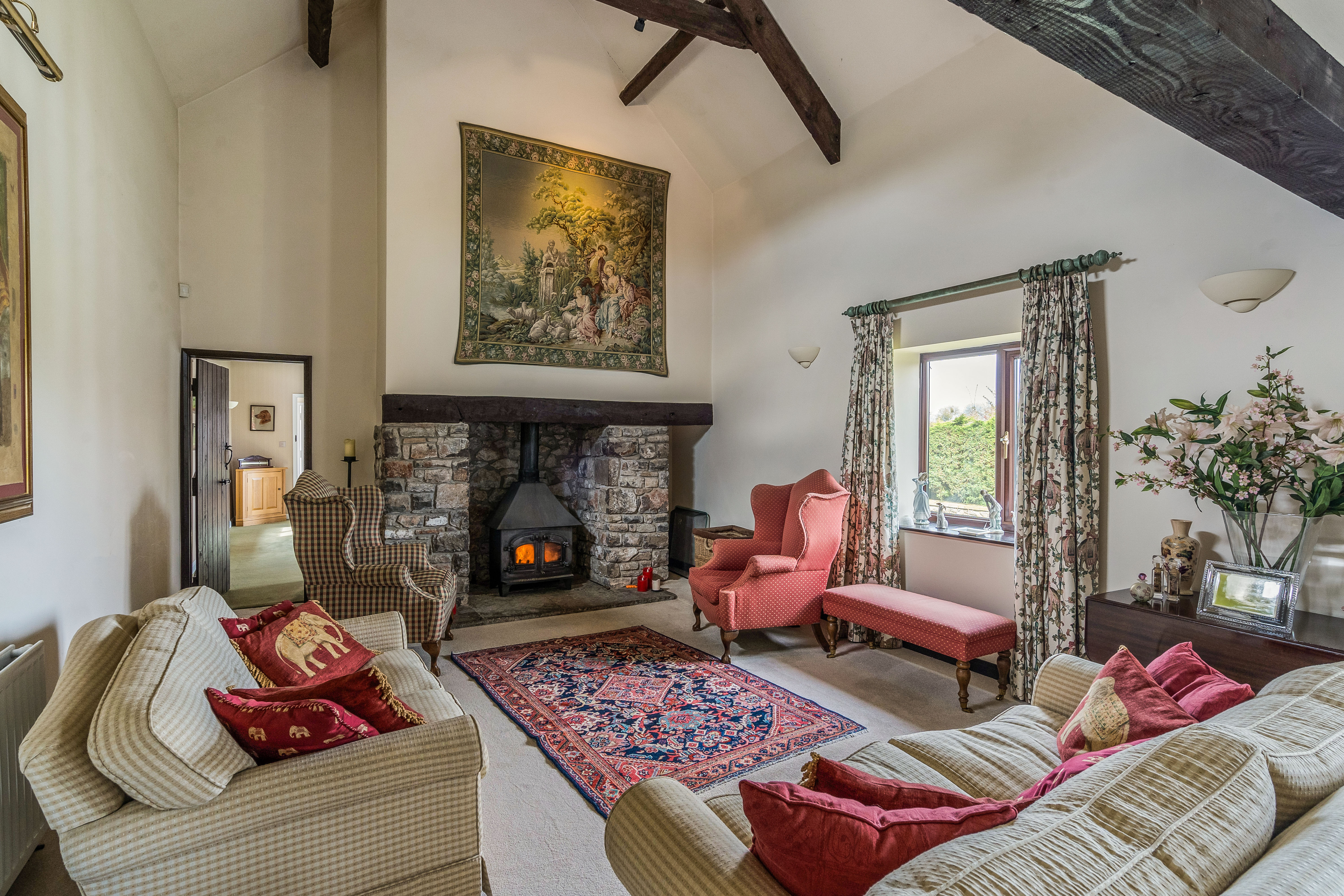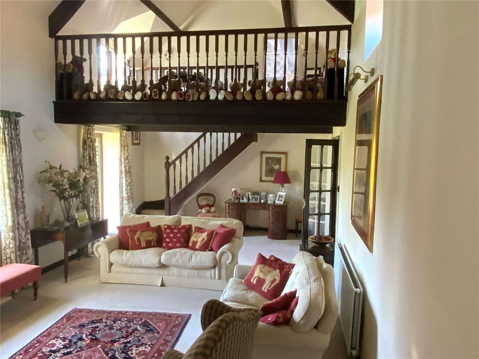 Entry to the house is through the central courtyard and through a welcoming front door into to the hallway with double doors leading directly to the high-vaulted sitting room. With French doors and views over the garden and featuring, an inglenook fireplace with log burner and an impressive galleried area above, it really does convey a sense of grandeur which is evident throughout the property.