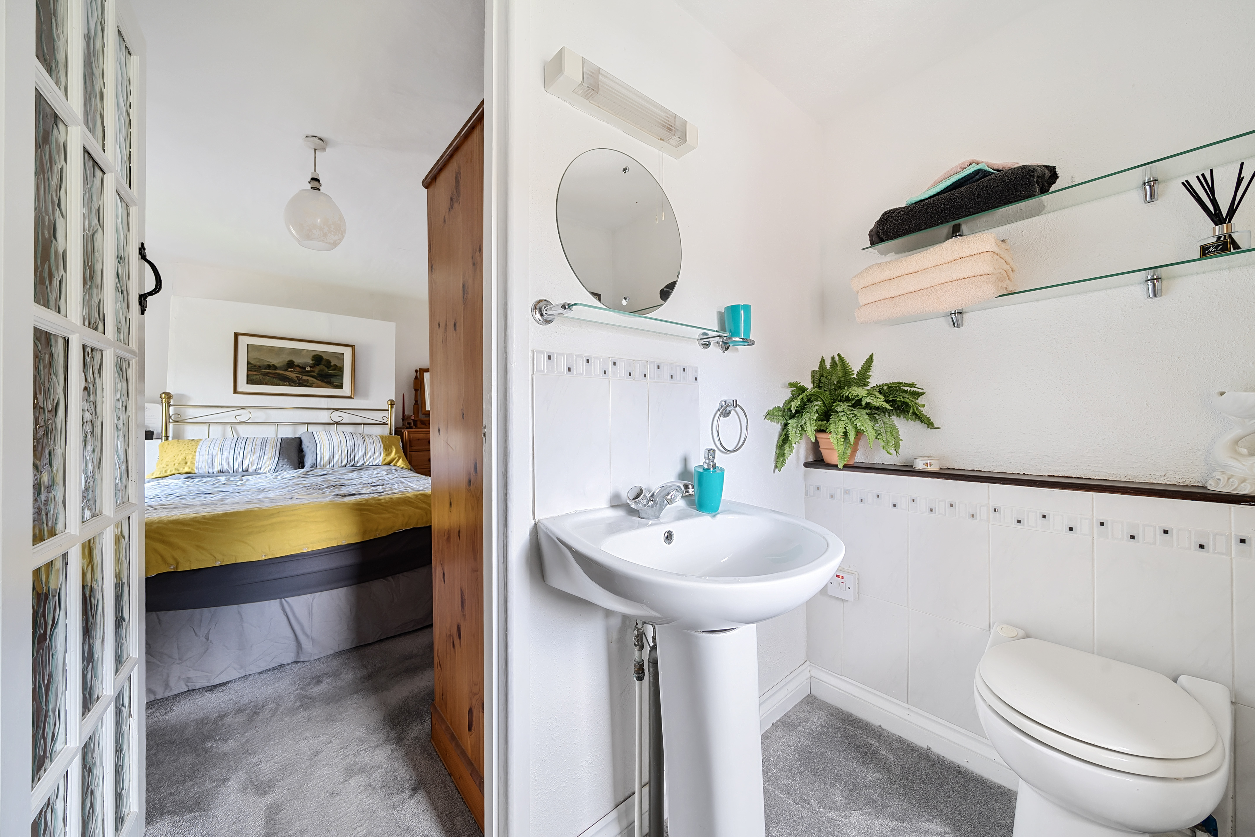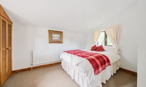 A latched door from the sitting room reveals stairs to the first floor where there are 2 good sized double bedrooms. The principal has ensuite shower room. Rising again takes one to the third bedroom which has fitted wardrobes and lovely views to the hills in the distance.