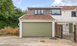 To the rear lies a smaller yet productive garden, home to a greenhouse and apple and pear trees. Wrought-iron gates open onto a tarmac driveway with parking for several vehicles, as well as access to the integrated garage, which has both an up-and-over door and a pedestrian entrance leading directly into the house.